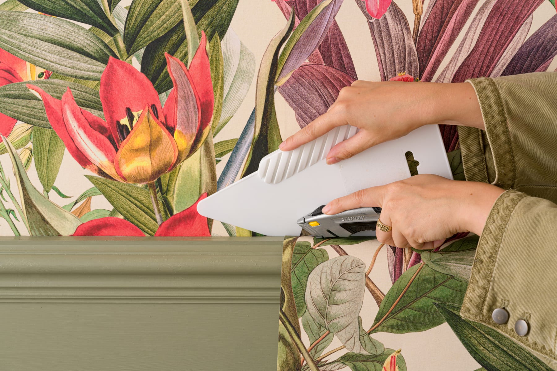 11. Trim away any excess paper at the top and bottom of each strip using a sharp knife. Dull blades can cause the paper to tear. Allow for drying at room temperature, ensuring there is lots of ventilation. If there is a heat source such as a radiator on the same wall as the wallpaper, turn it down or off for the first 24 hours of drying, this will reduce the possibility of shrinkage. Sit back and enjoy your handiwork!
