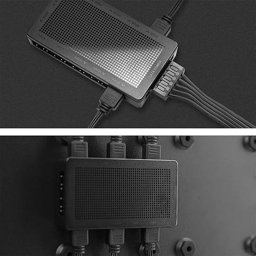 - [Safe and Efficient]:Exquisite and compact, efficient and stable, multi-line management and control, keep cables tidy, support ARGB fan, ARGB light bar, etc., synchronize the light effect of 5V 3pin interface devices.