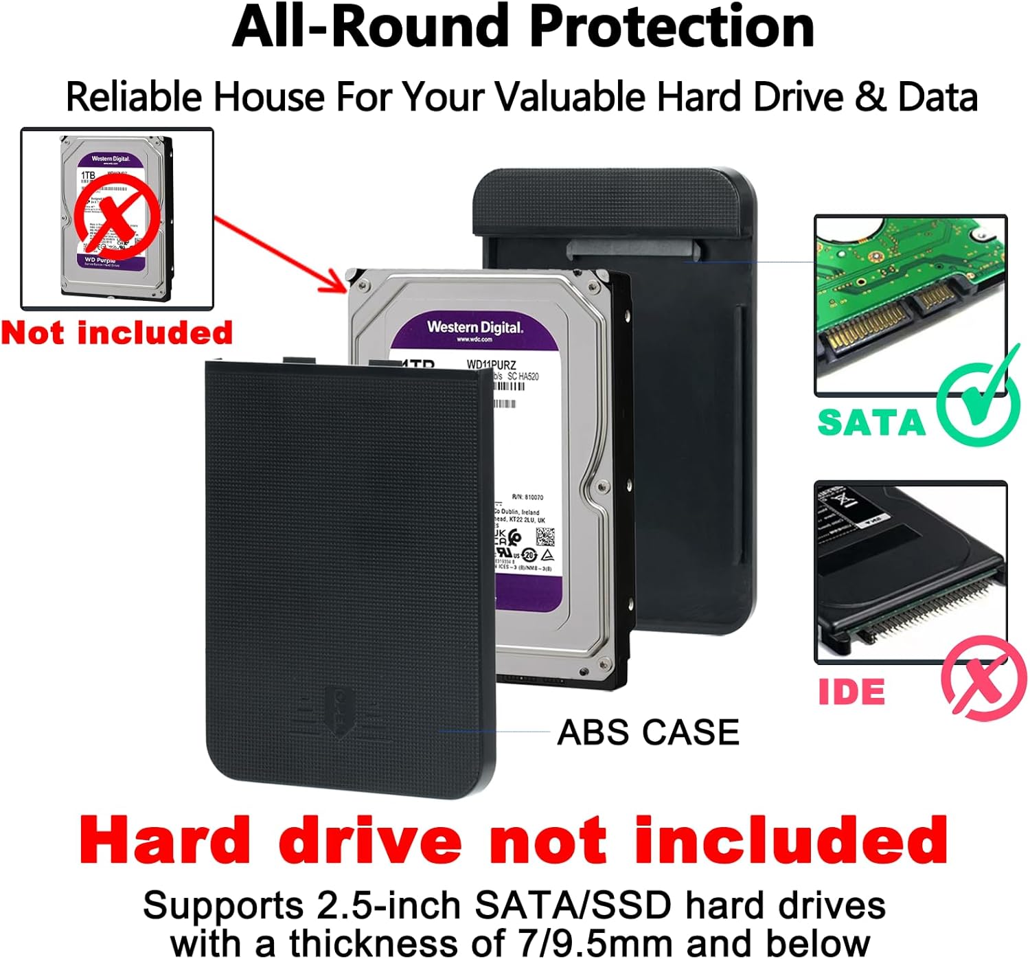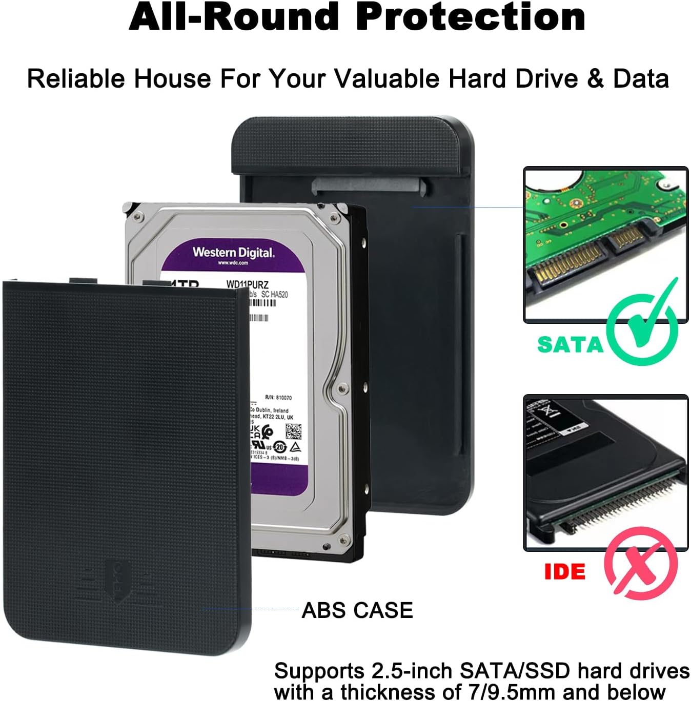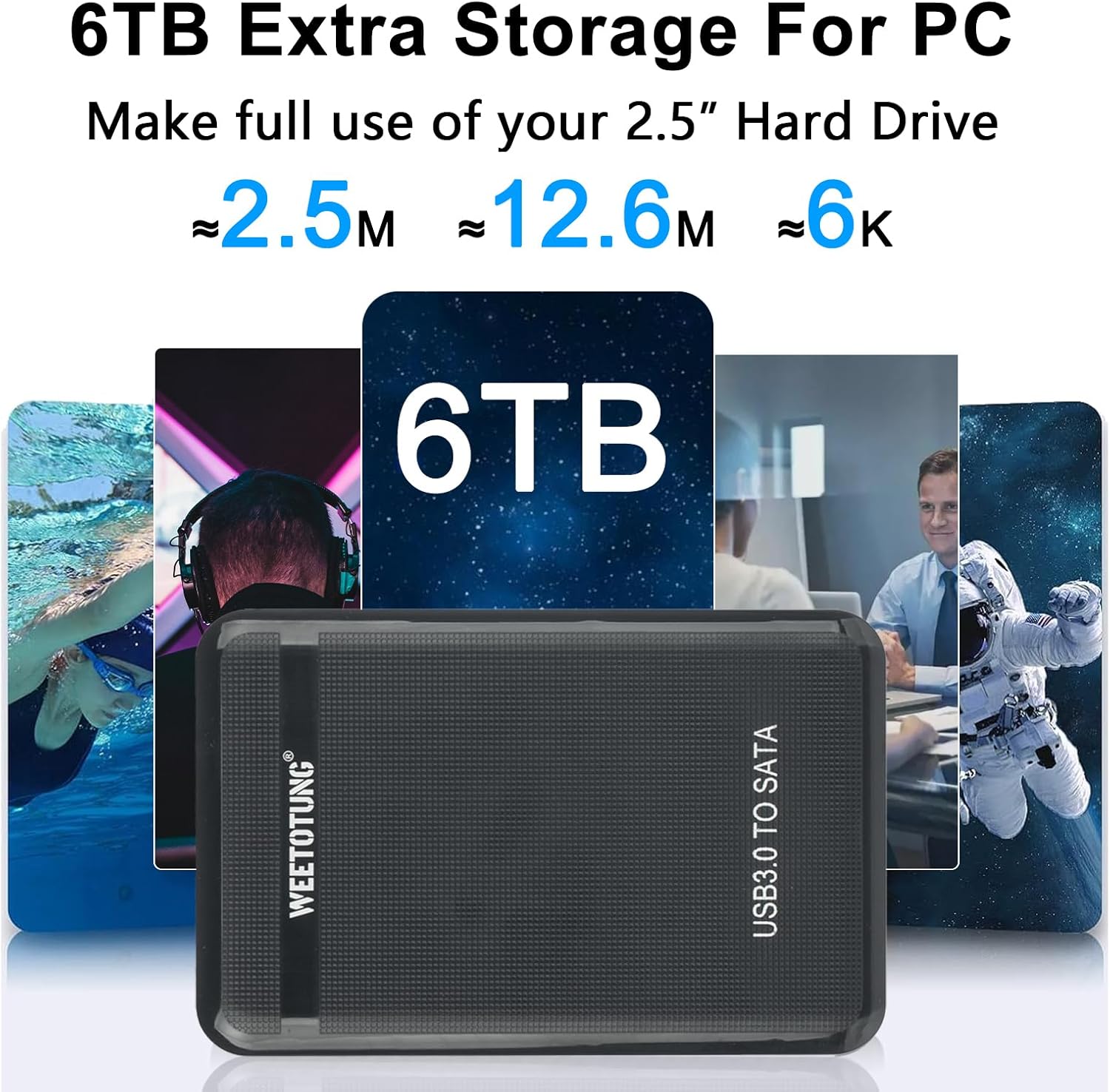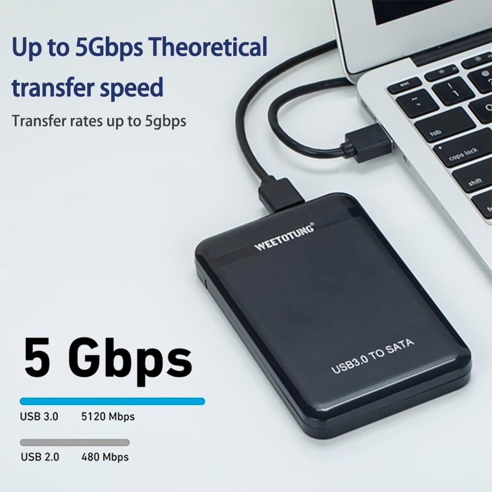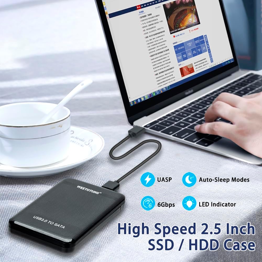 2.5'' SSD HDD External Hard Drive Enclosure - WEETOTUNG USB3.0 5Gbps Tool-Free Case with UASP Supported for sata - Compatible 7mm/9.5mm Drive PS4/PS5/Xbox Seagate/WD/Toshiba Data Storage