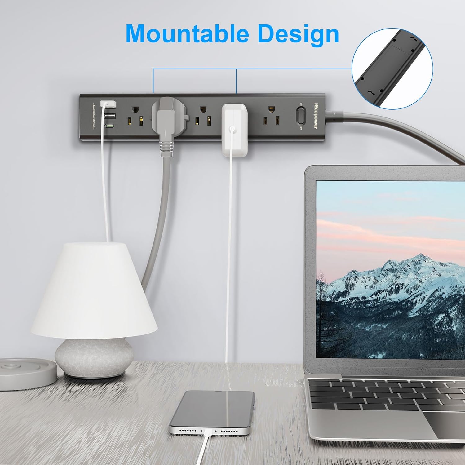 - 【Mountable Right Angle Flat Plug power strips & surge protectors】 - 18AWG extension cord surge protector with flush plug for easy access to tight spaces, even in complex use environments, plus 2 mounting hole locations on the back of the power strip for easy installation on horizontal or vertical walls or under-desk mounting for ease of use.