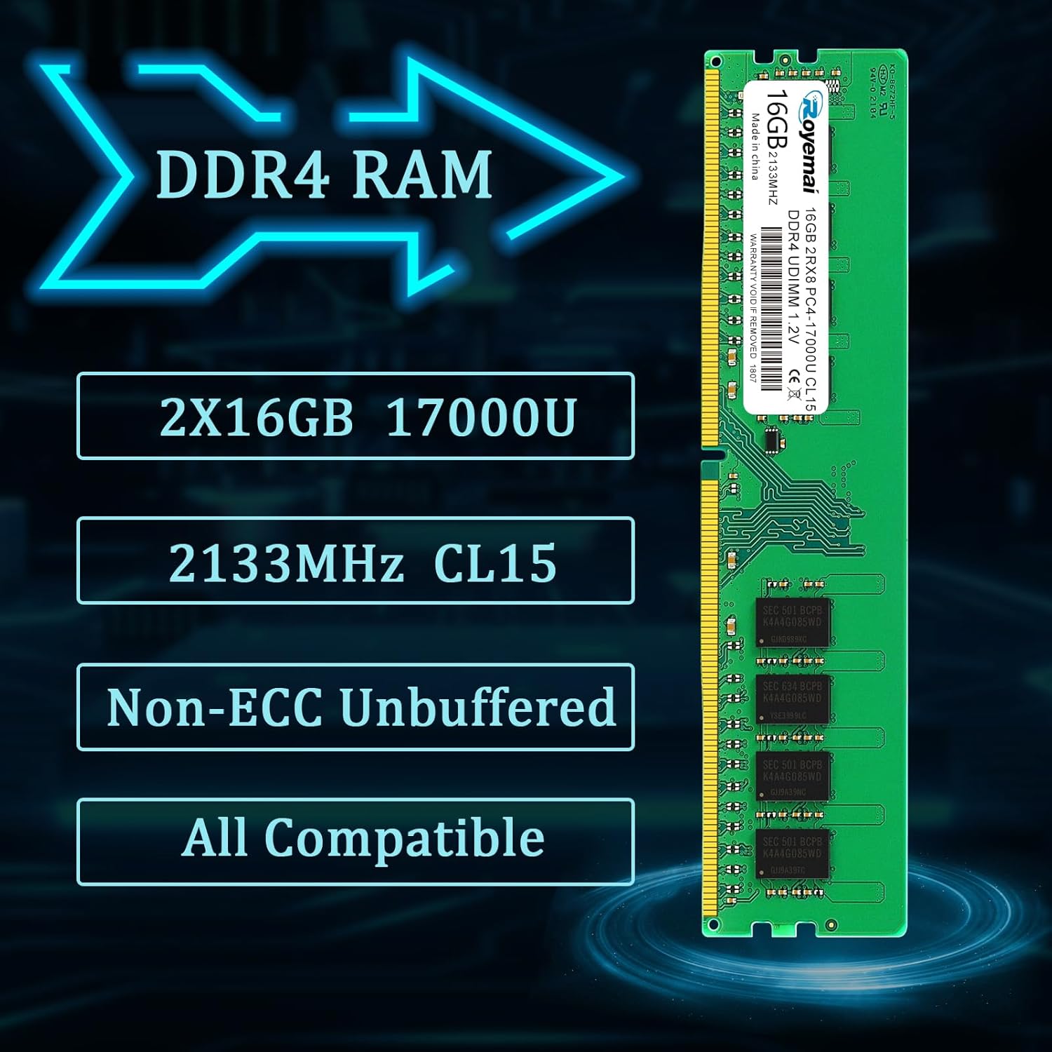- 【DDR4 32GB 2133MHz UDIMM RAM 】PC4-17000, DDR4 2133MHz, 2rx8, Unbuffered, Dual Rank, Non ECC, 1.2V CL15, apply for AMD, Intel, Mac system.