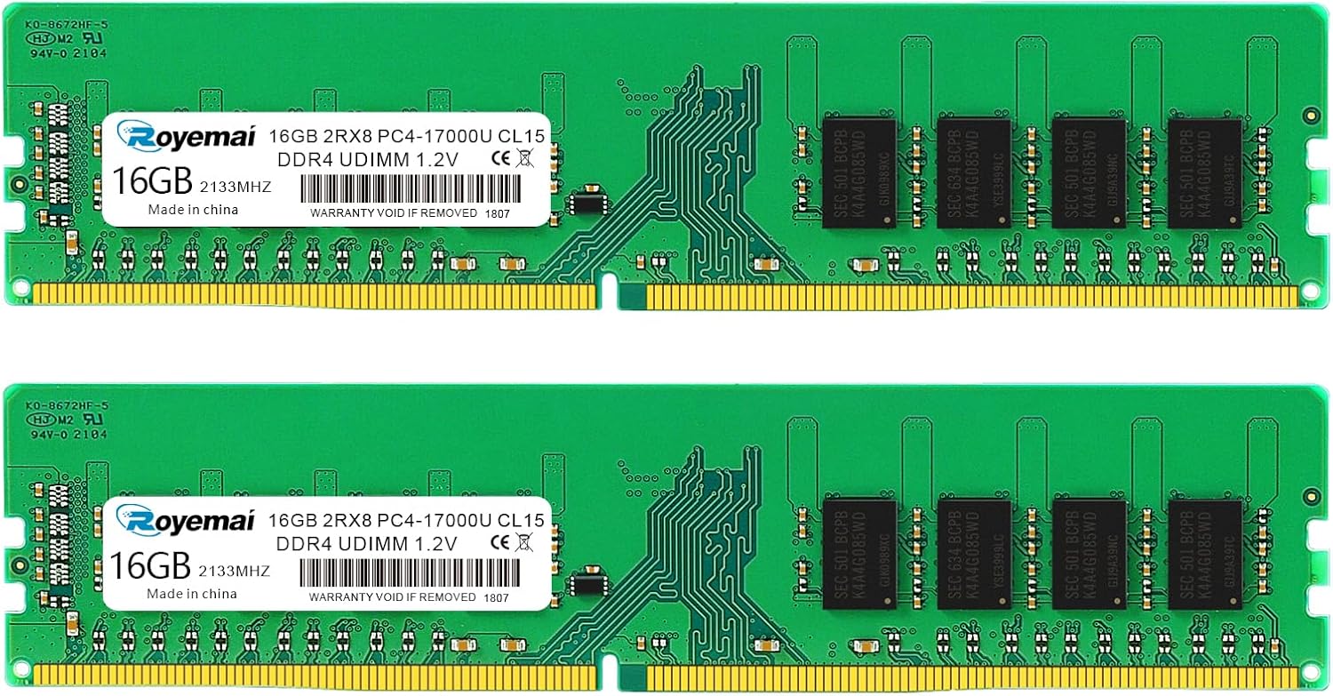 32GB DDR4 17000U PC4 2133 2X16GB UDIMM, DDR4-2133MHz 32G PC4-17000 CL15 2Rx8 1.2V Non-ECC 288 Pin Desktop Memory Module Ram