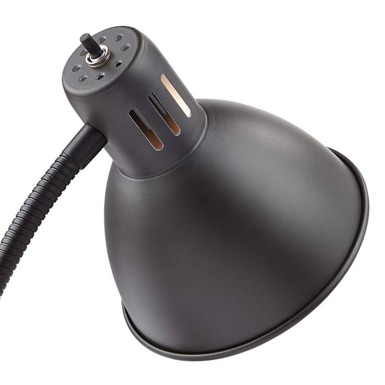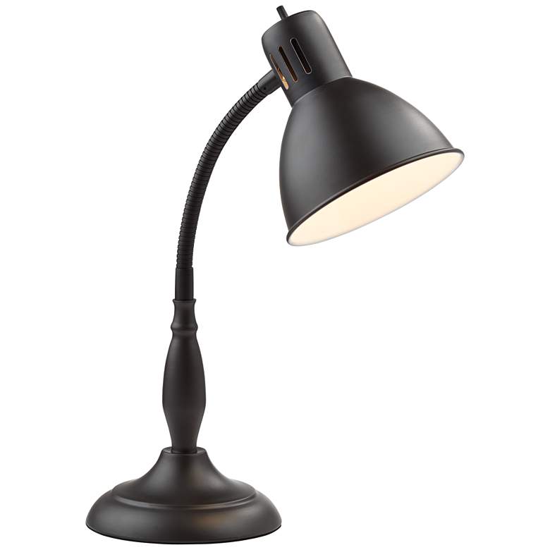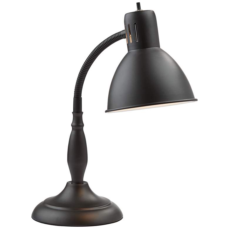 Make your workspace look and feel a bit more refined with this charming desk lamp. The flexible gooseneck arm and metal shade allow for ample downlight so your work area is well illuminated when you need it most. A convenient on-off rotary switch is located on top of the lamp for easy access.
