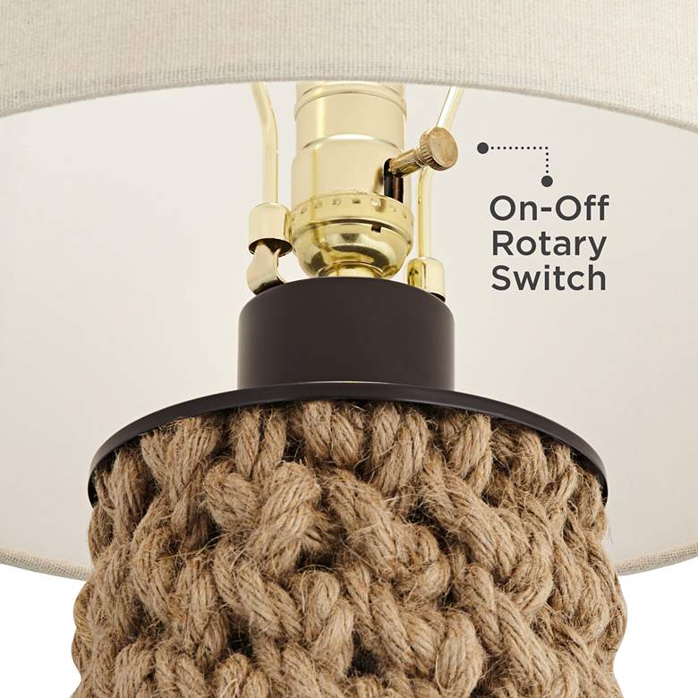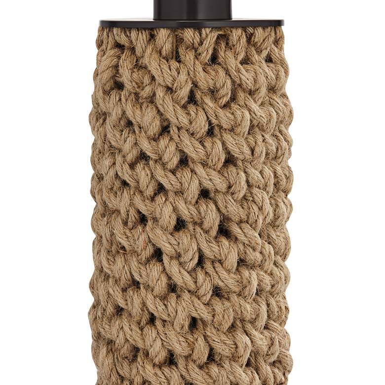 - Natural rope wrapped lamp bases provides an organic, natural room accent. Bronze finish metal accents.