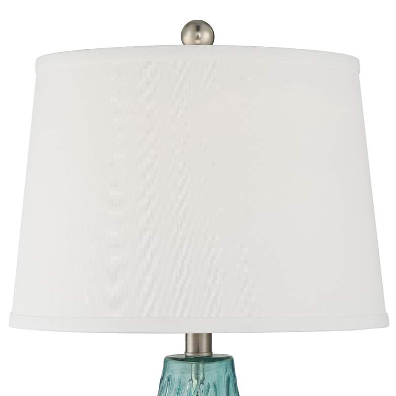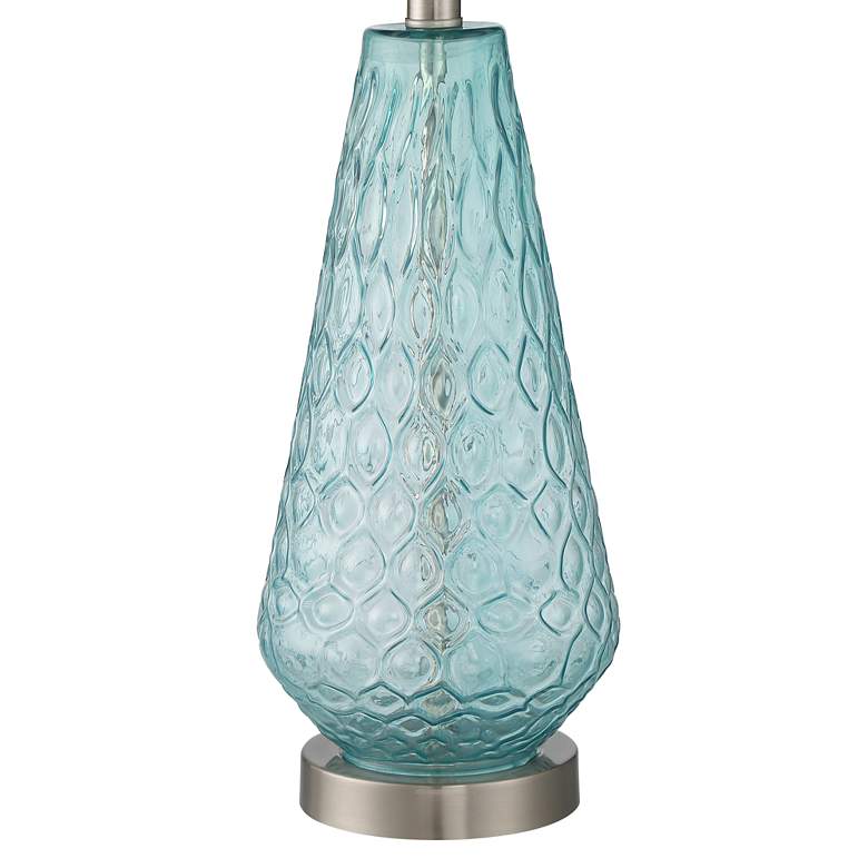 - Blue glass table lamps from the 360 Lighting brand. Ideal for coastal or modern room decorating.
