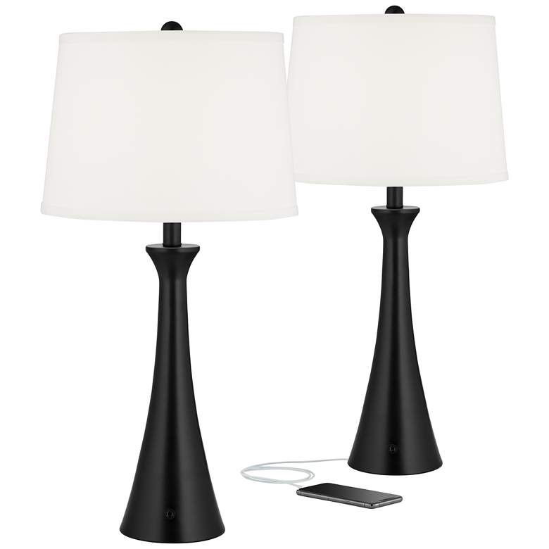 360 Lighting Karl 28 1/4" Black Finish Outlet-USB Table Lamps Set of 2