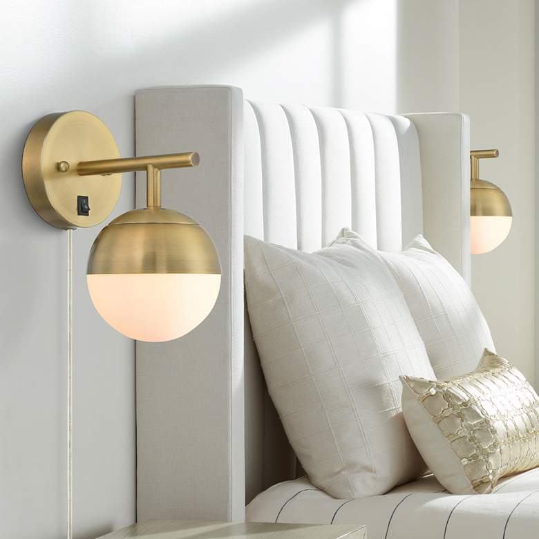 - Luna modern globe plug-in wall lamps set of 2 from the 360 Lighting brand.