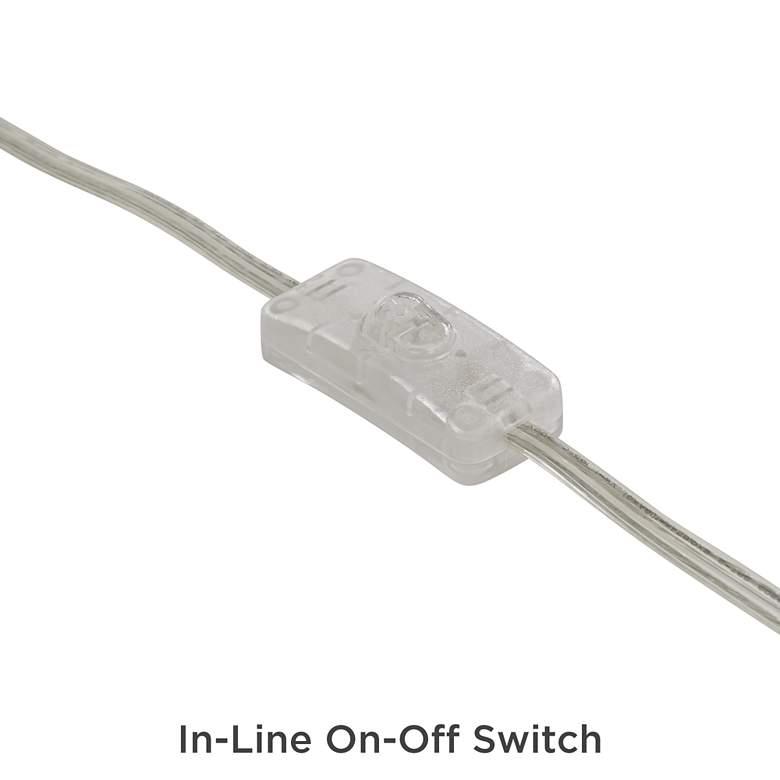 - Antique brass finish metal base. 8-foot long clear cord.
