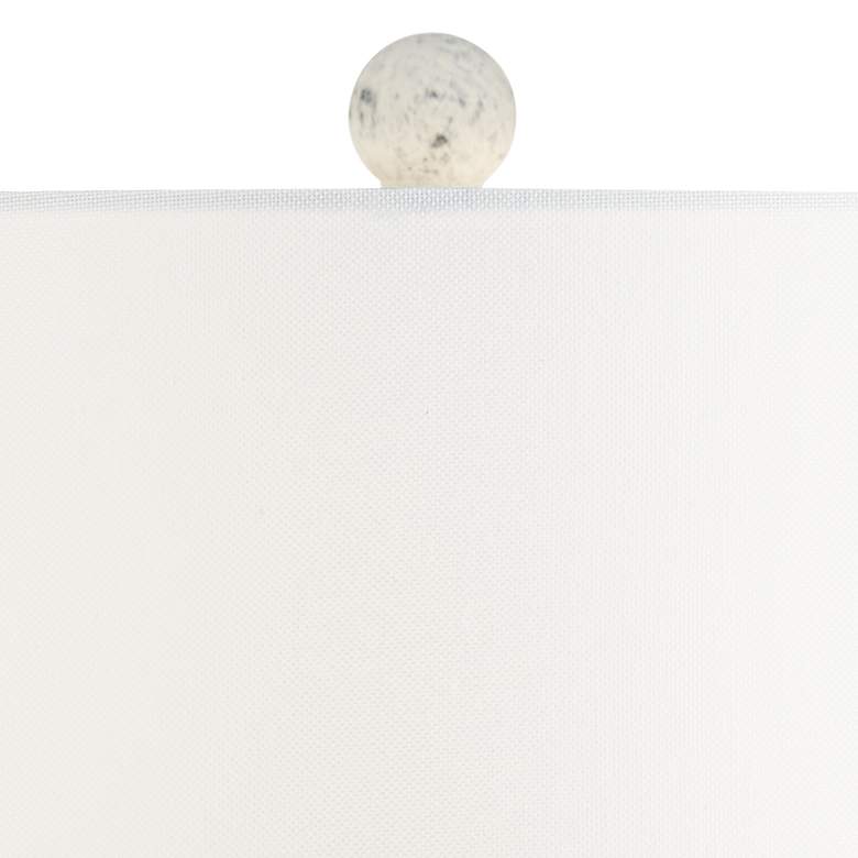 Handcrafted from ceramic, this modern table lamp by 360 Lighting offers pure style for a wide variety of decors, from Mid-Century and Scandinavian to rustic and coastal. The base comes in a sandstone rock ceramic finish that has a washed-stone look to it. Up top is a white linen fabric lamp shade. Due to the handcrafted design, the color and finish may vary. Ideal for the Japandi interior design trend, a minimalist look that blends Japanese and Scandinavian styles with organic appeal.