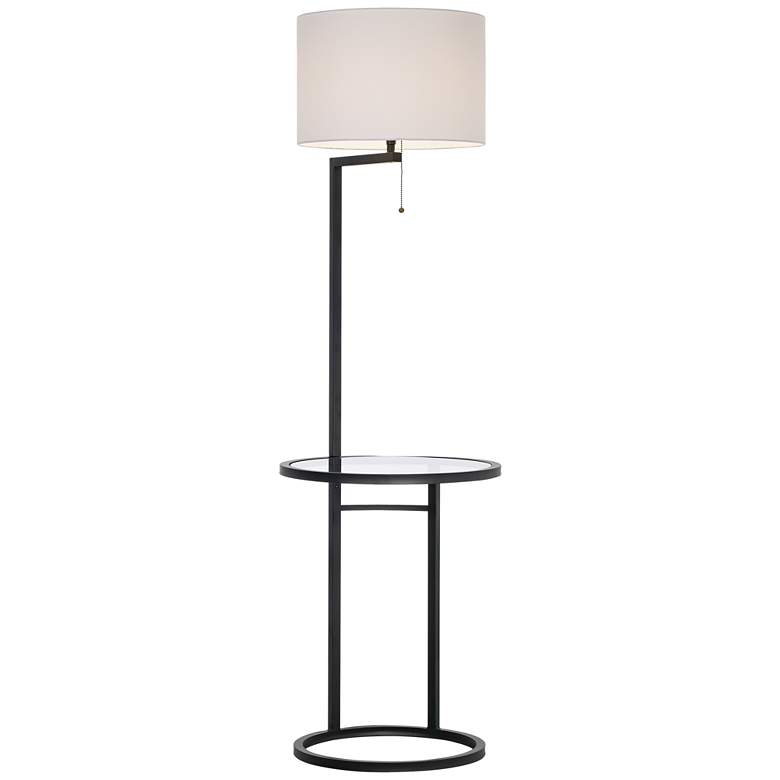- Glass tray - shelf floor lamp from the 360 Lighting brand. Use as an end table or as a reading chair lamp.