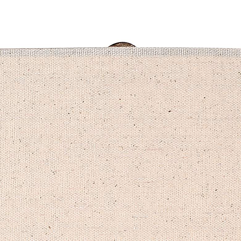 - Set of 2 lamps. Each is 28" high. Bases at very bottom are 5" wide. Shades are 14" across the top x 15" across the bottom x 11" high. Weigh 7.9 lbs.