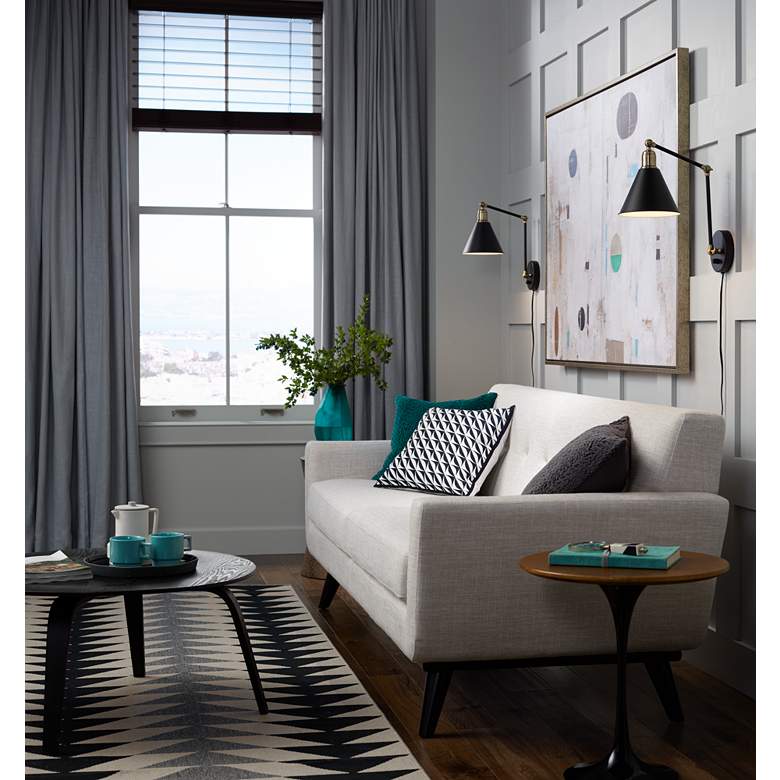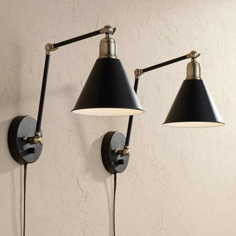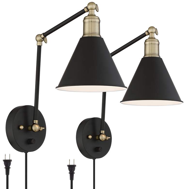 360 Lighting Wray Black and Antique Brass Plug-In Wall Lamps Set of 2