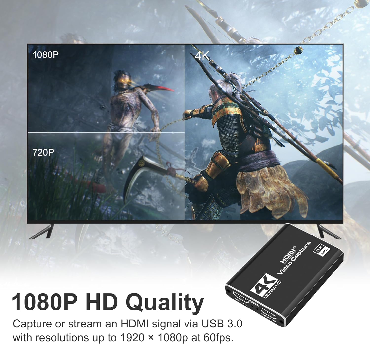 4K HDMI Capture Card for Streaming, Full HD 1080P 60FPS USB Cam Link Game Audio Video Capture Card Nintendo Switch/PS5/3ds/Xbox/PS4... Read more Read more