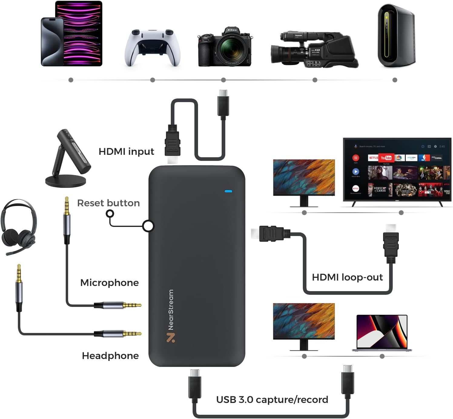 - 【1080P 60fps USB-C 3.0 Capture Card】: The game capture card can capture video resolution up to 1080P at 60fps from HDMI video source devices, compatible with most HDMI source devices like PS5, PS4 Pro, Switch, Camera, DSLR, PC and more.
