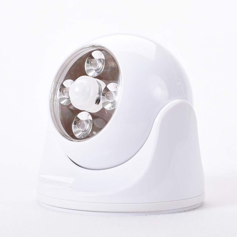 - White finish. 360-degree adjustable swivel head with sensor mounts anywhere.