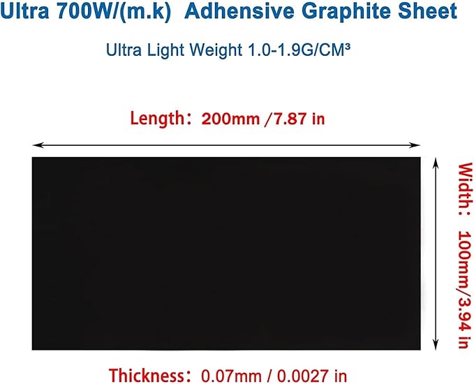 Adhensive Graphite Thermal Pad 700W/m⋅K Horizontal Conductivity, 200x100x0.07mm Flexible Graphite Sheet for Mobile Laptop CPU Cooling -2 Pack