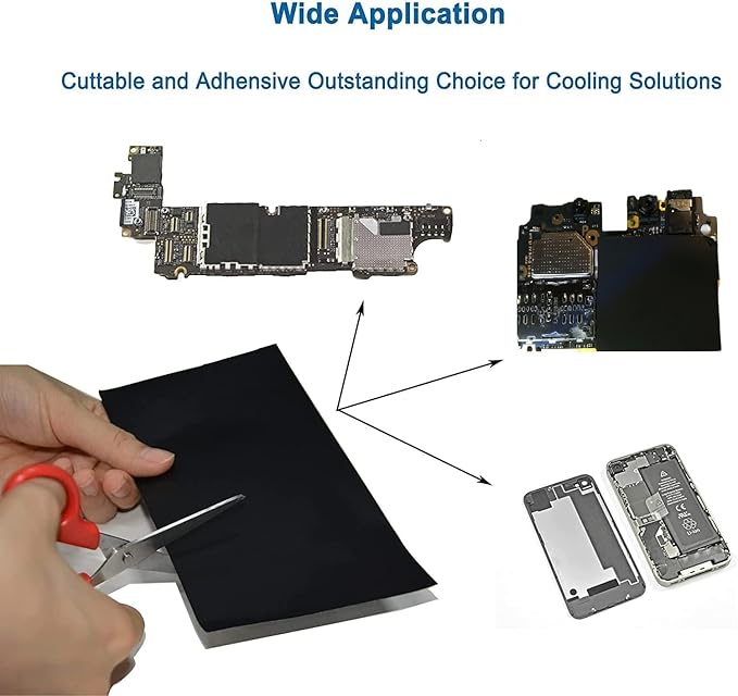 - OUTSTANDING MATERIAL : This graphite Thermal pad is 100% pure graphite and non-toxic. It is a brand-new thermal and heat dissipation material that conducts heat uniformly in two directions, shielding heat sources and components to improve the performance of consumer electronic products