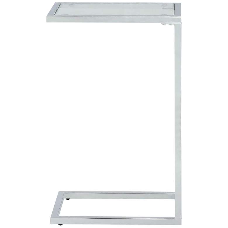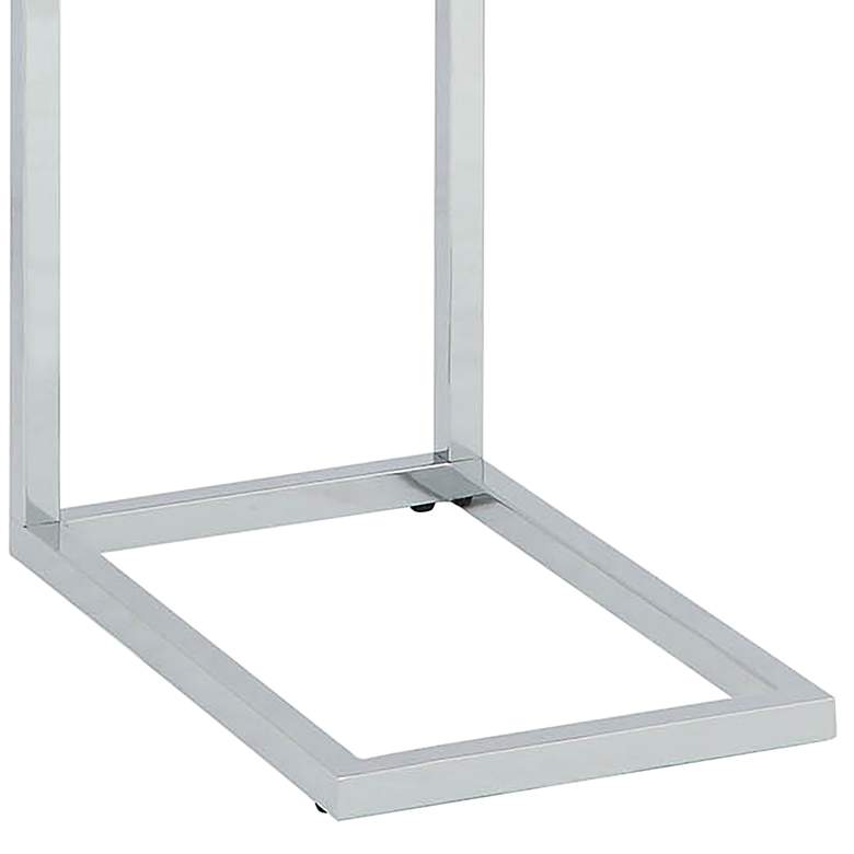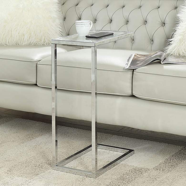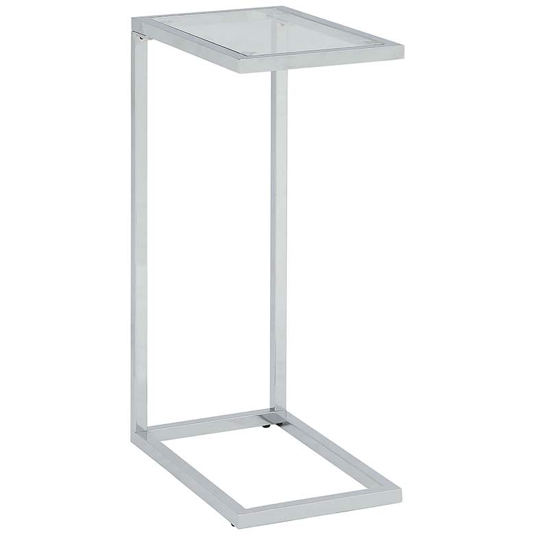 Keep your laptop or tablet close at hand with this compact, C-shaped computer tray table. Lovely in a powder coated chrome finish over a tubular frame, the table is complete with a tempered glass top while its base slides under the edge of a sofa, bed, or armchair. This table is a fantastic solution to a compact space that doesn't allow for a dedicated home office space while is adds wonderful style to any space.