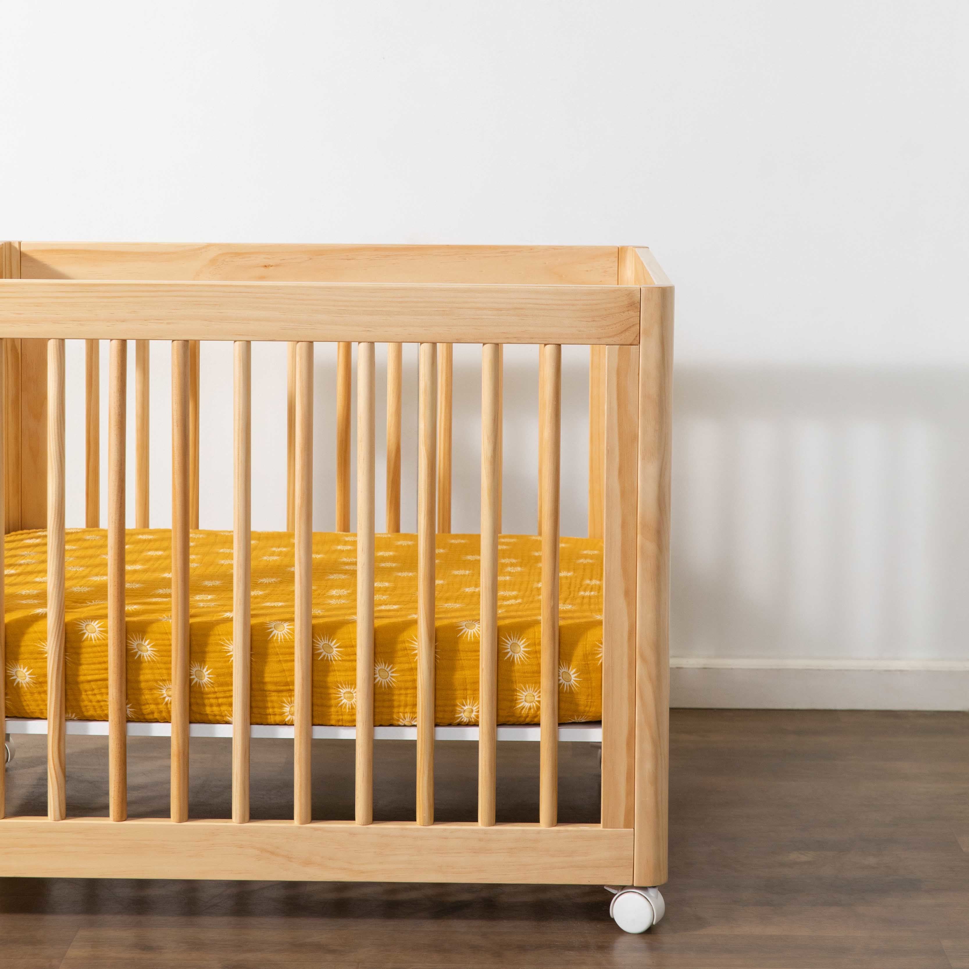 Our custom midi crib sheets are consciously crafted from breathable and soft GOTS-certified organic muslin cotton to ensure your baby has the perfect sleeping environment. Uniquely designed to fit the Babyletto All-Stages® Midi crib mattress or pad.