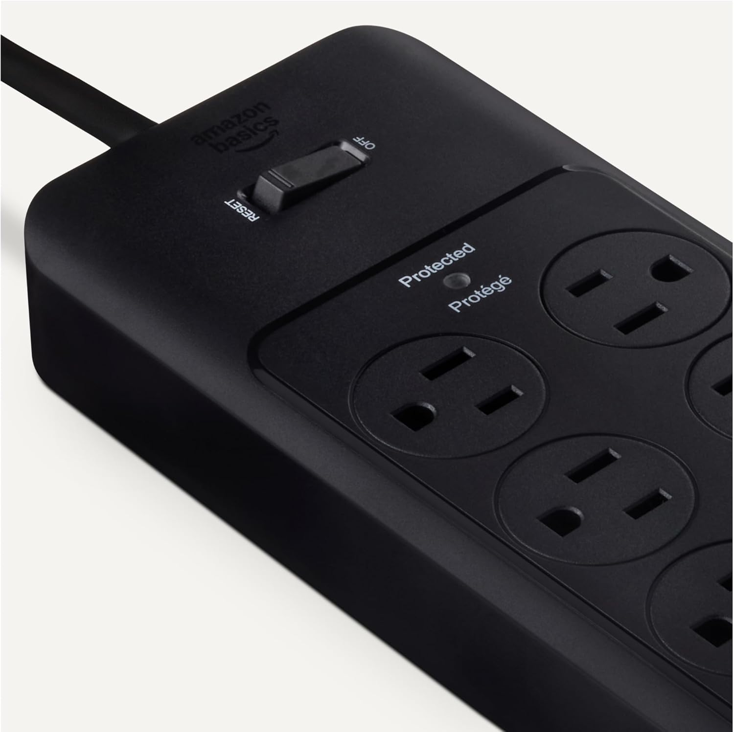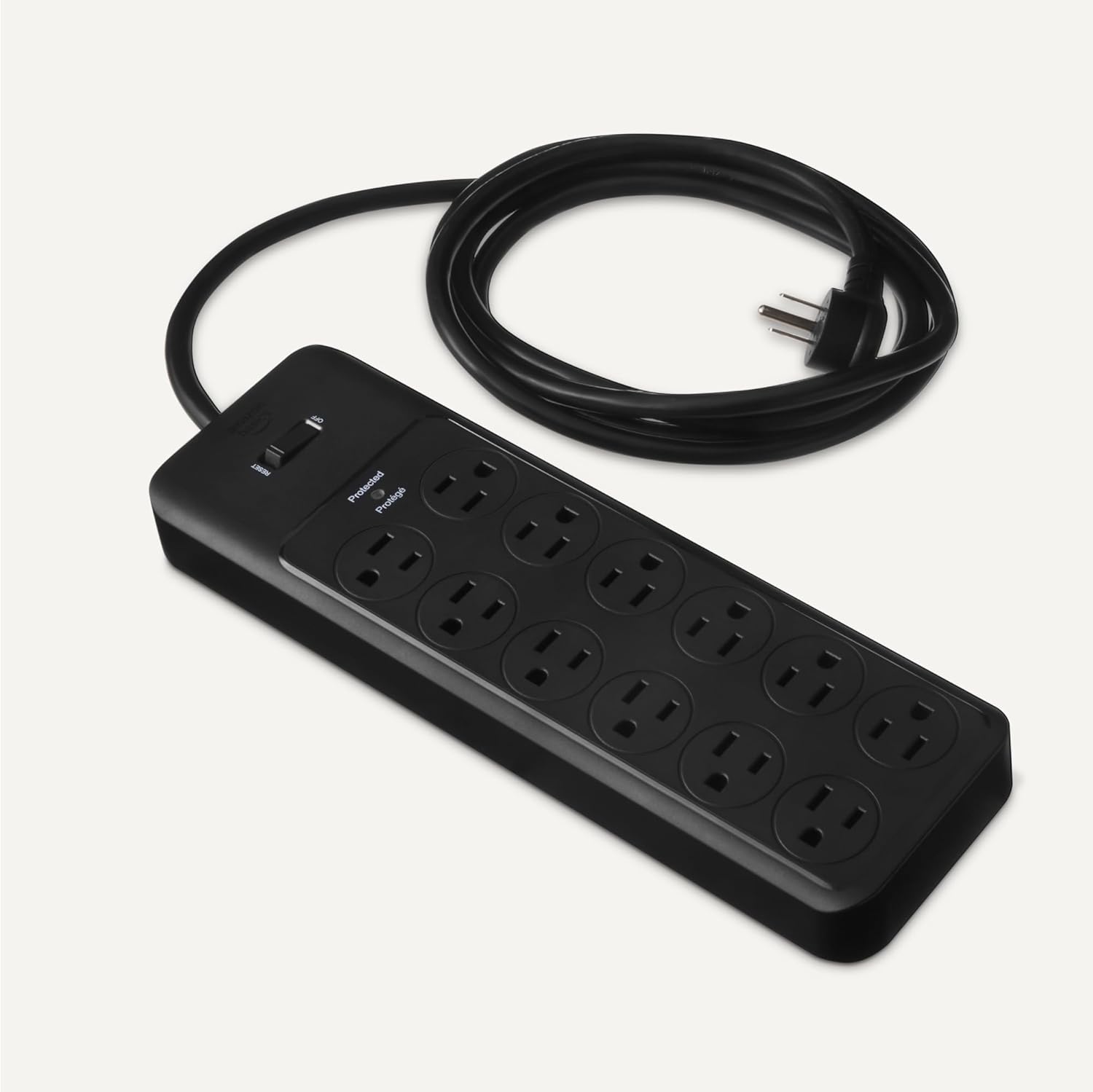 Amazon Basics Surge Protector Power Strip, 12-Outlet, 4000 Joules, 8ft Extension Cord, Rectangle, for Home, Office, Gaming Room, Black