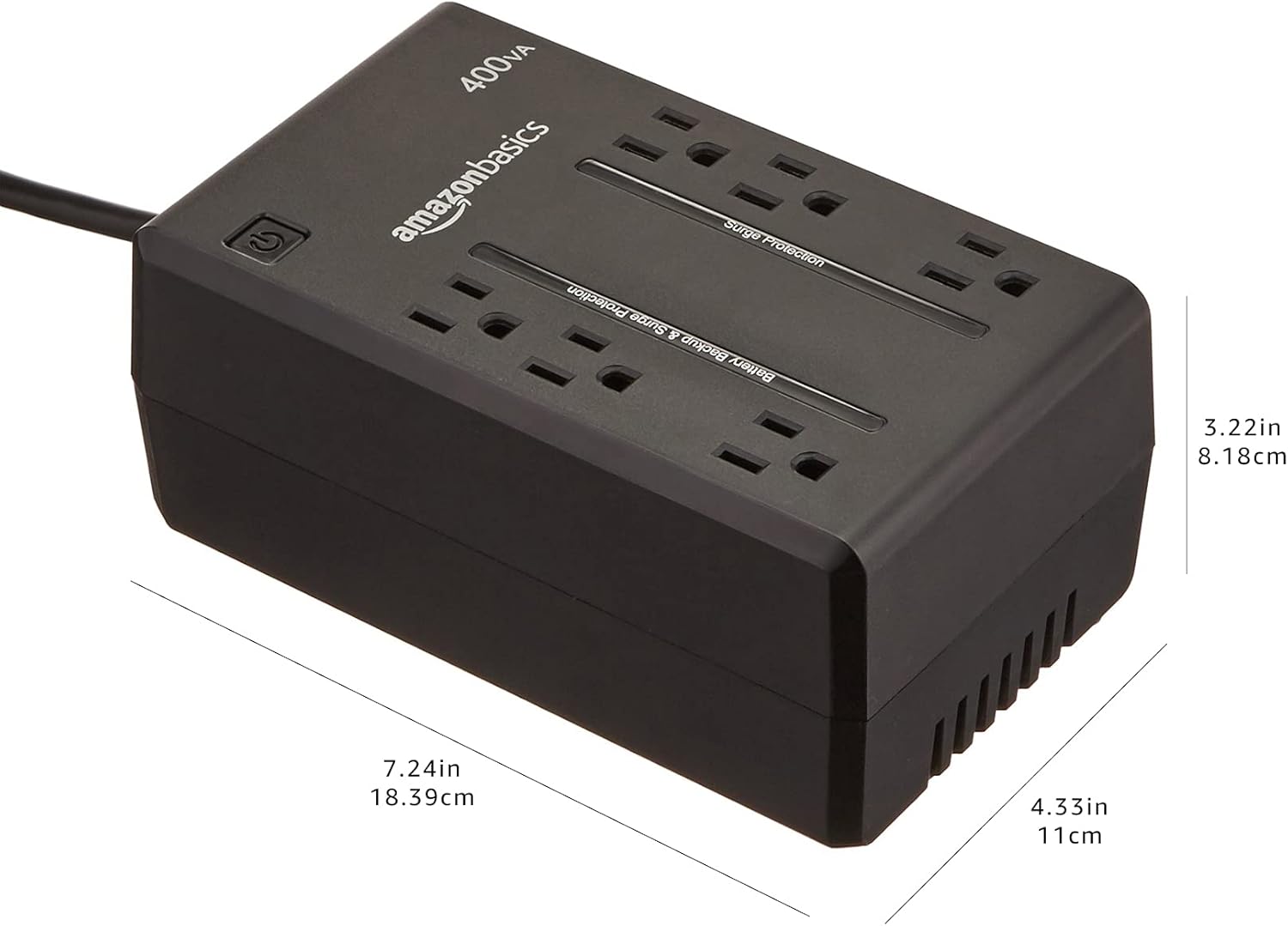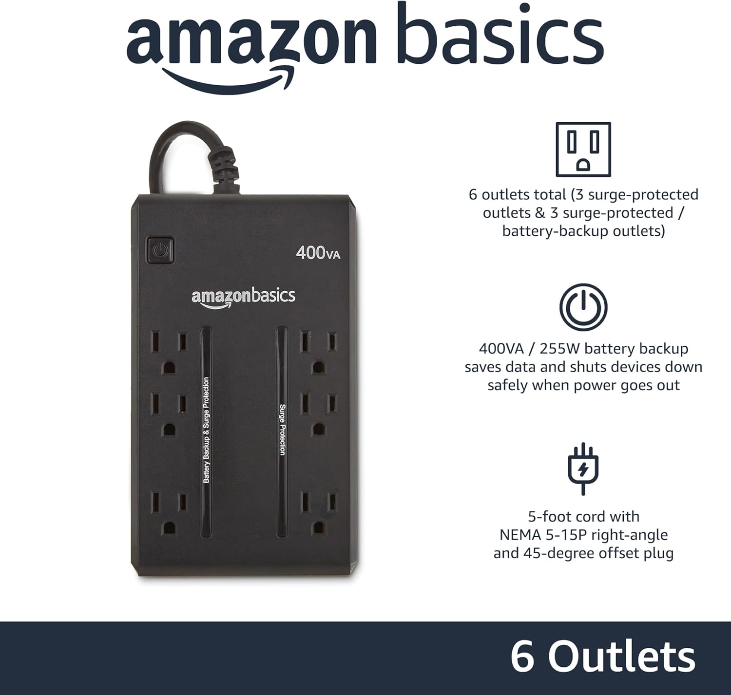 Amazon Basics UPS Battery Backup & Surge Protector 400VA/255W, 6 Outlets, Standby Uninterruptible Power Supply, for Power Outage Protection, Compact, Black