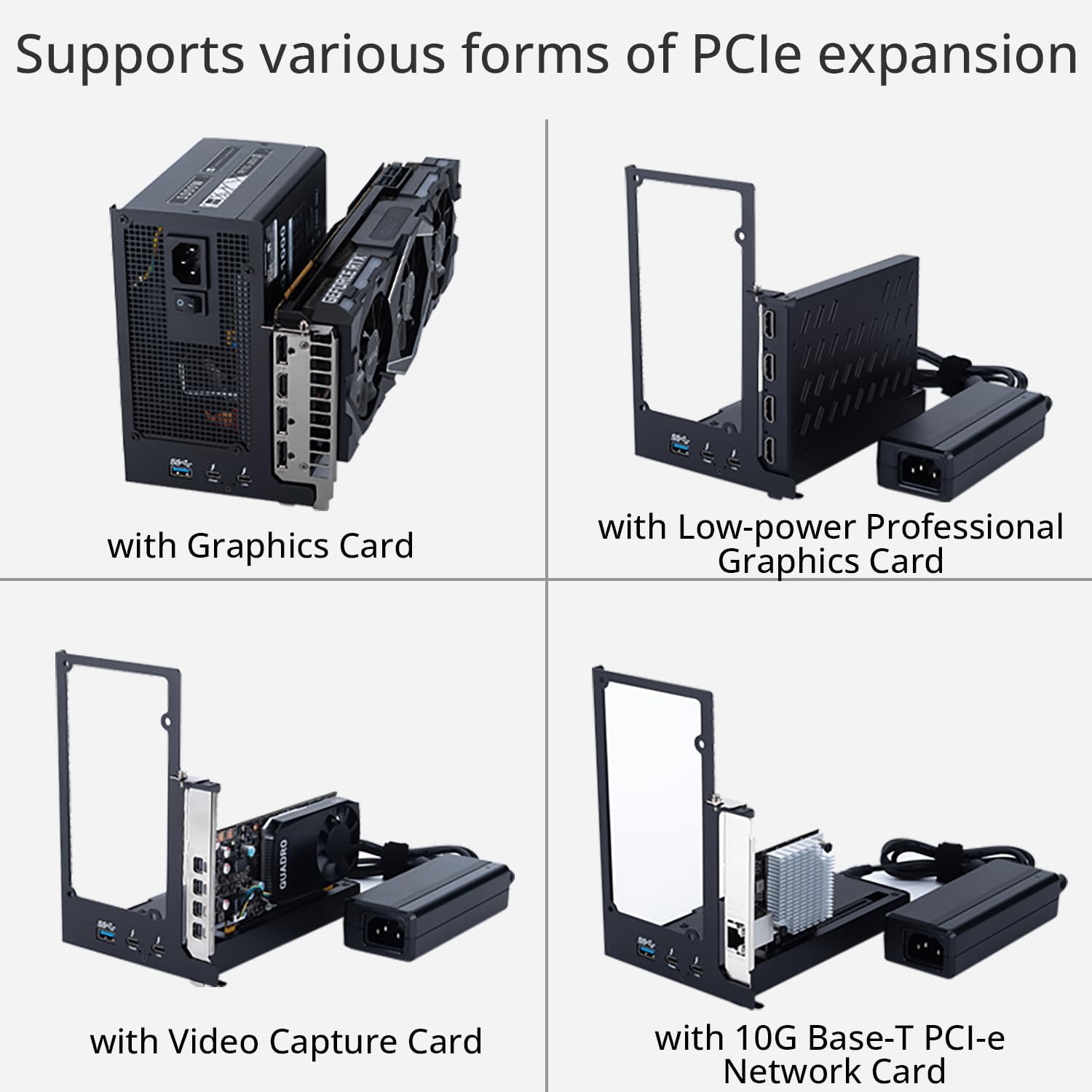 - Wide Compatibility: The eGPU dock is compatible with NUCs, laptops, and gaming machines featuring USB4/TB3/TB4 interfaces. Support NVIDIA (including latest RTX 50 Series 5090 D/5080/5070 Ti/5070, etc.)/AMD (including latest RX 9000 Series) GPU.