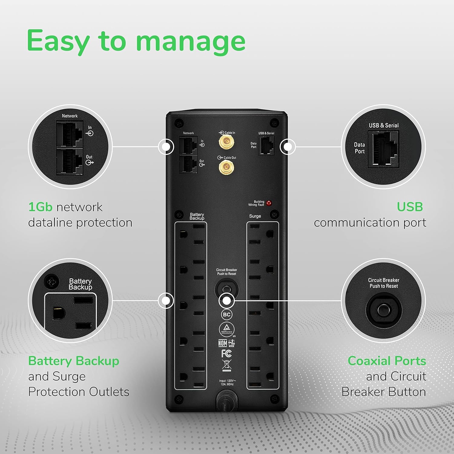 - Longer Runtime, High-Power Devices: This 1500VA / 900W Uninterruptible Power Supply supports larger setups, such as a PC with multiple monitors, router, and more