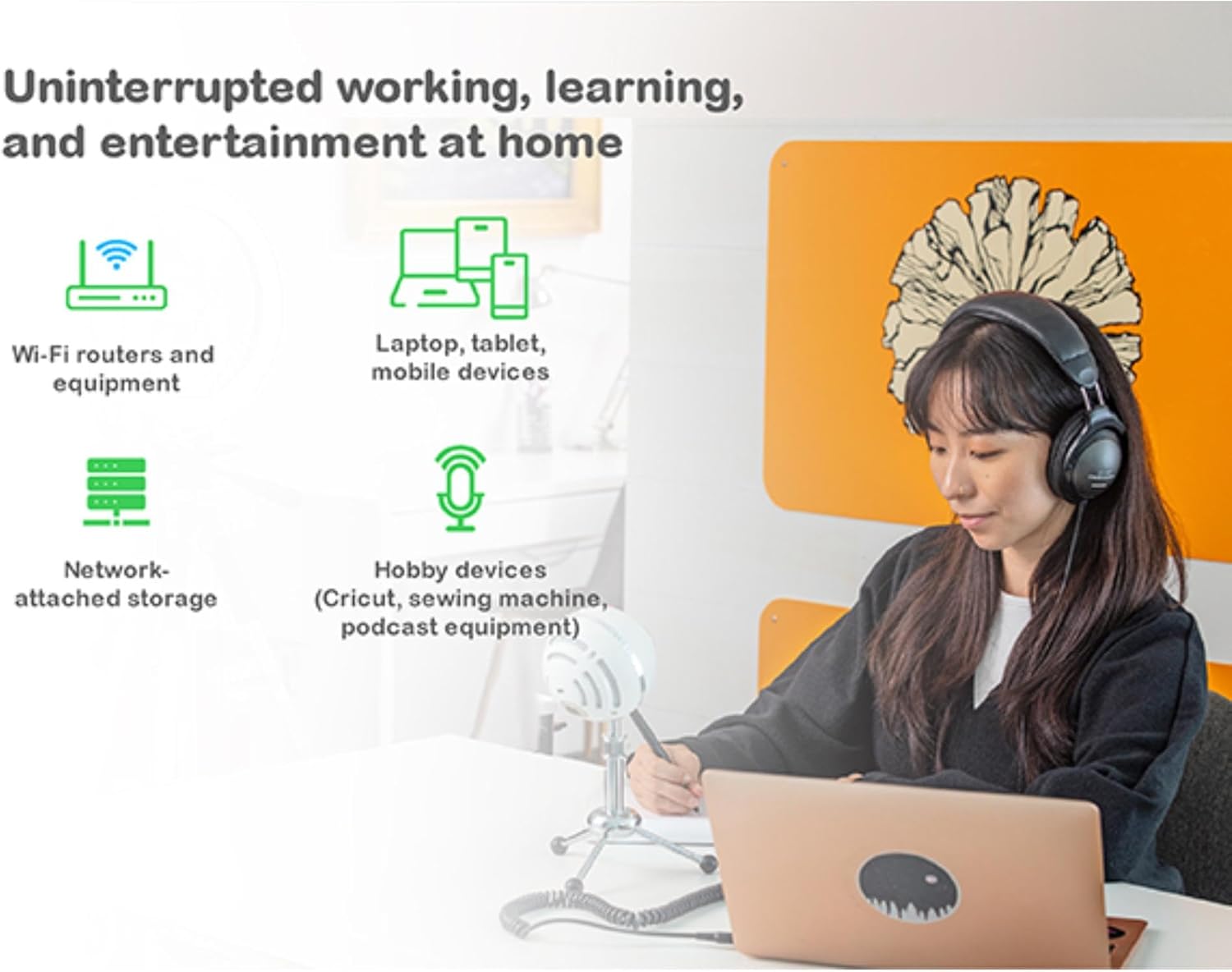 - 8 Outlets (NEMA 5-15R): 6 ups battery backup & surge protector outlets; 2 outlets with Surge Protection Only. Powerchute UPS management via dedicated data port (Windows 10, 22H2 Pro, 11 Pro. For Mac OS, use native "Energy Saver" Settings)