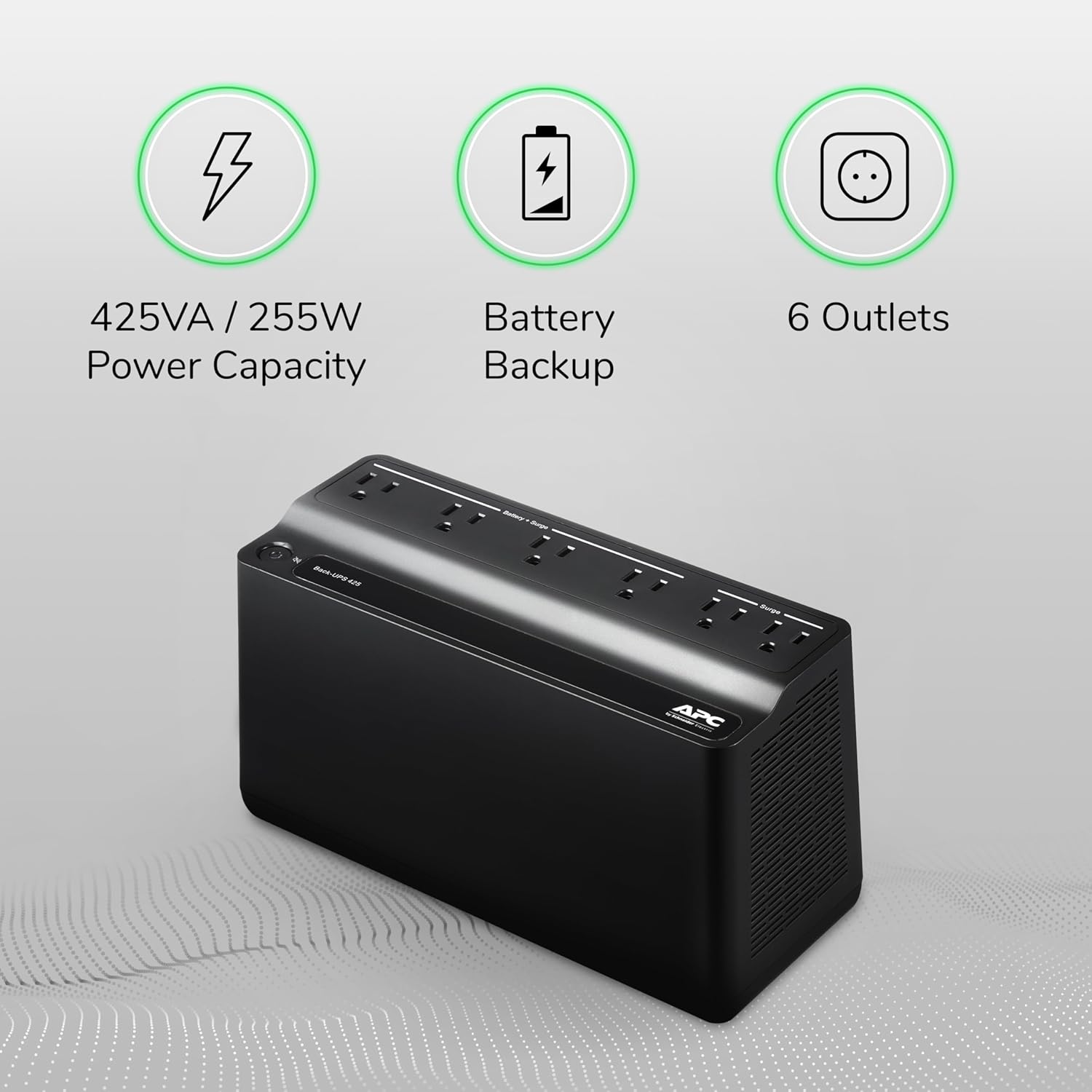 APC UPS Battery Backup Surge Protector, 425VA Backup Battery Power Supply, BE425M, Black Brand: APC Battery Cell Composition: Sealed Lead... Read more Read more