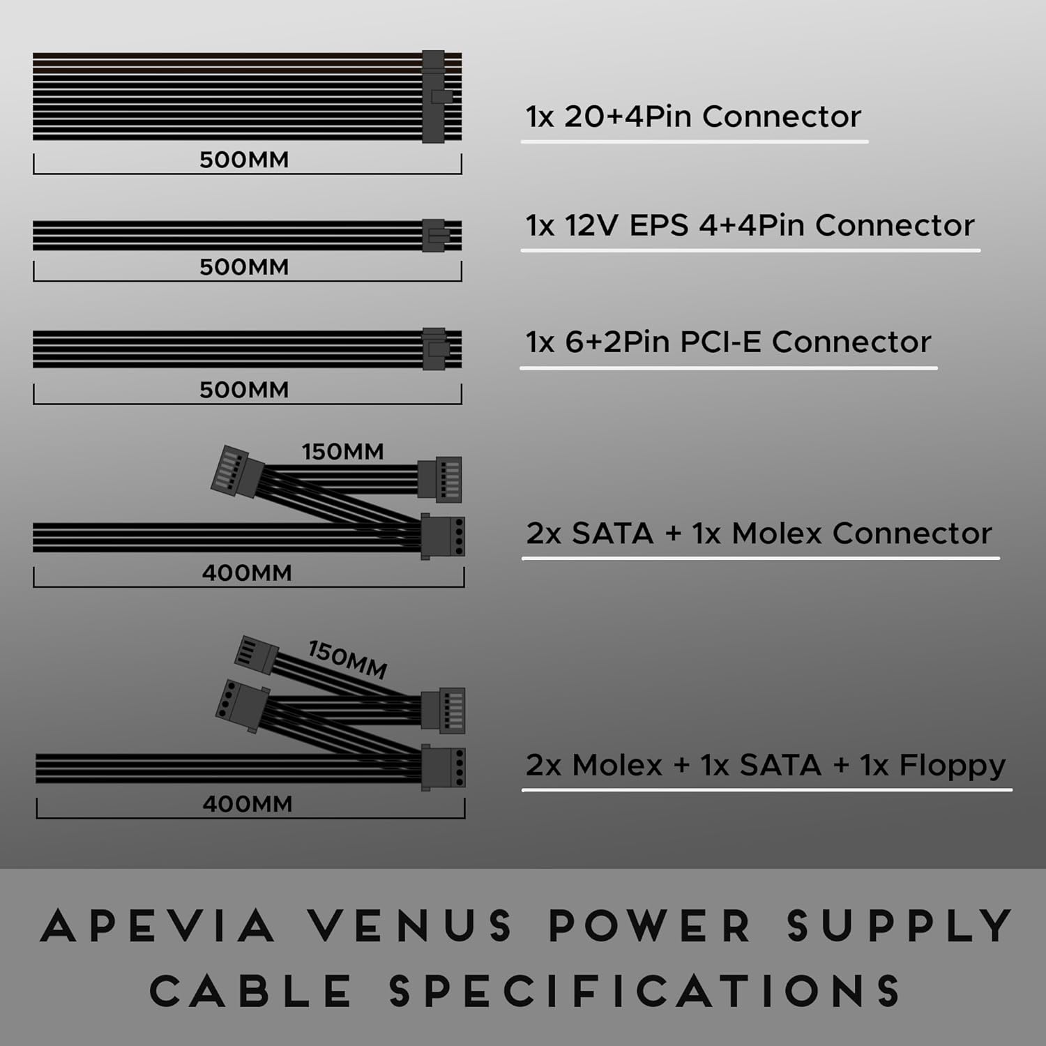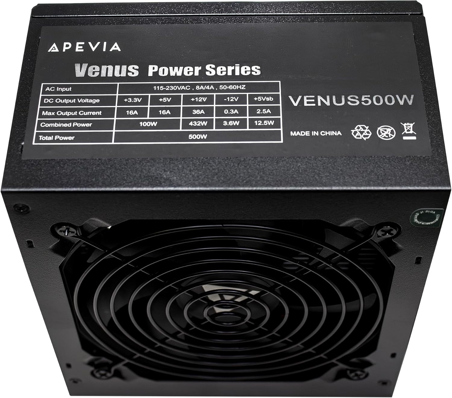 APEVIA VENUS500W Venus 500W ATX Power Supply with Auto-Thermally Controlled 120mm Fan, 115/230V Switch, All Protections Model Name: Venus Brand:... Read more Read more