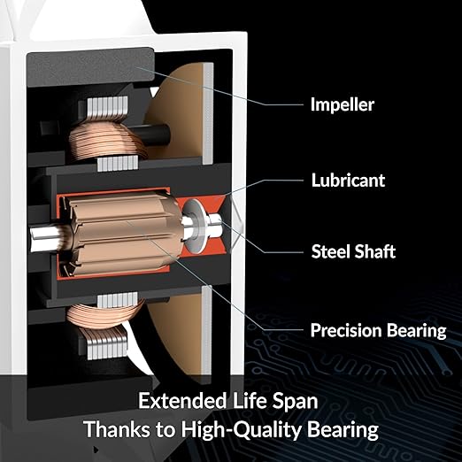 - FLUID DYNAMIC BEARING: Long service life, silent operation at low speeds and powerful performance at maximum speed