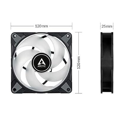 ARCTIC P12 PWM PST A-RGB - PC Fan, 120mm PWM Case Fan Optimized for Static Pressure, Semi-Passive: 200–2000 RPM (0 RPM <5%), 5V 3 pin ARGB LED, Single Fan - Black