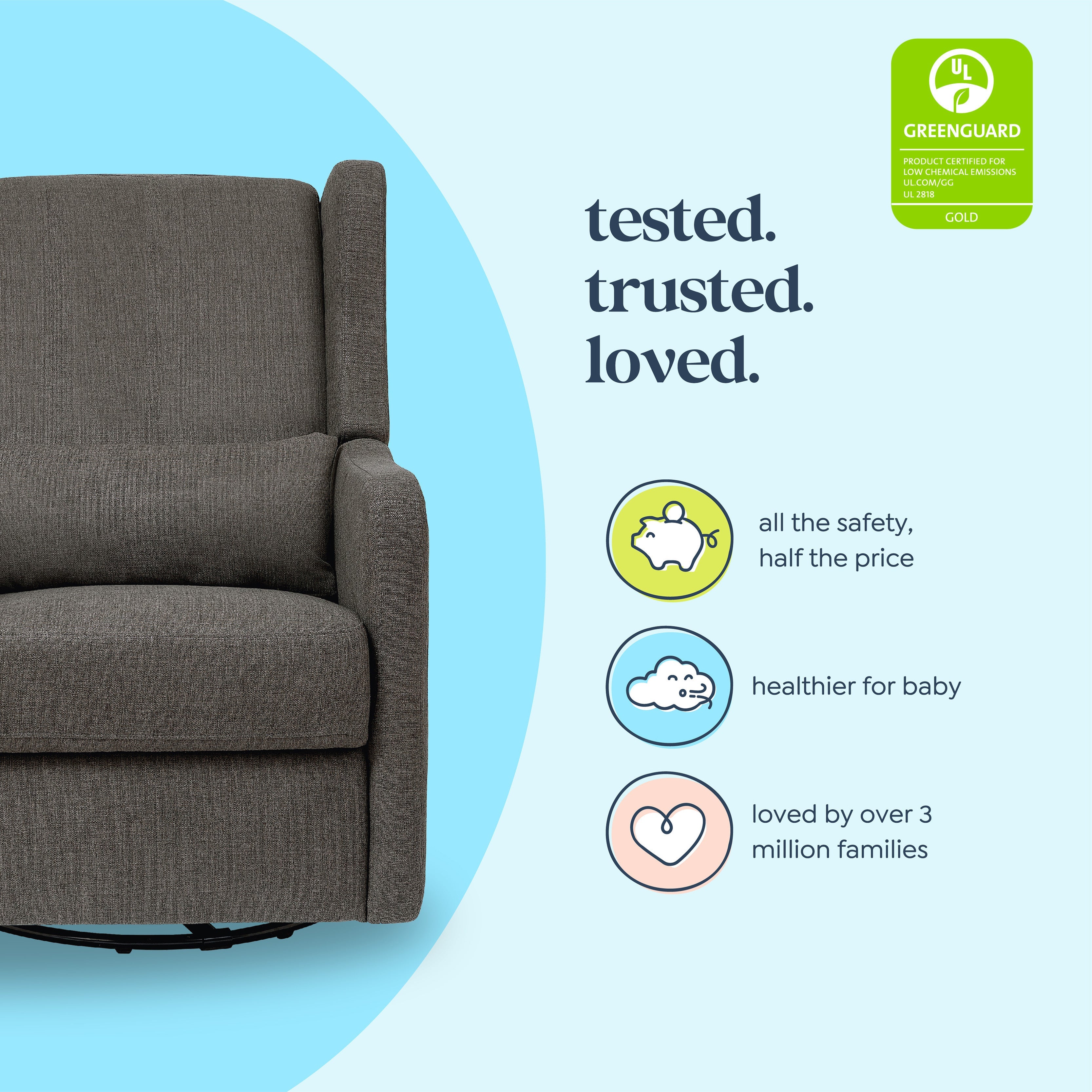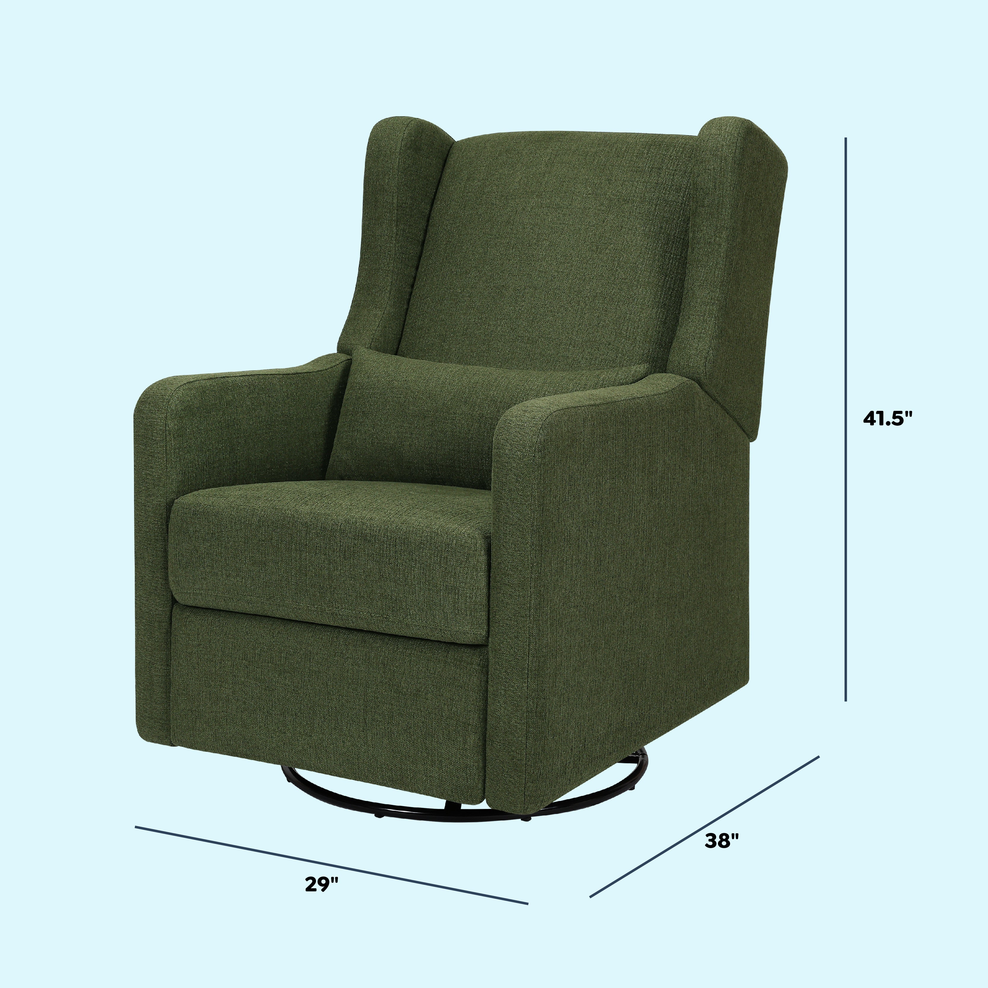 The Arlo Recliner and Swivel Glider has been thoughtfully designed to make feeding time comfortable and easy. Mom can rest easy in this soft and durable glider that glides, swivels, and reclines to a peaceful resting position. Its water repellent & stain resistant fabric keeps the glider looking beautiful through years of use. With its clean lines and wingback style, this timeless and versatile design can easily transition to your home in the later years.
