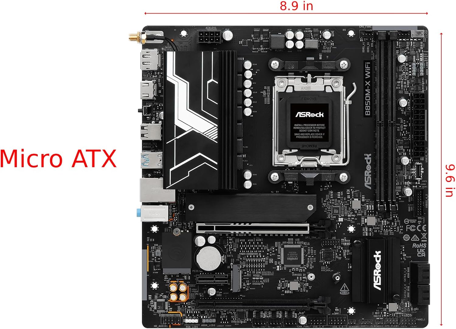 ASRock B850M-X R2.0 Micro-ATX AM5 Motherboard, AMD Ryzen 9000/8000/7000 Support, DDR5 8200+ OC, PCIe 5.0, 2.5G LAN, 6+1+1 Power Phase,... Read more Read more