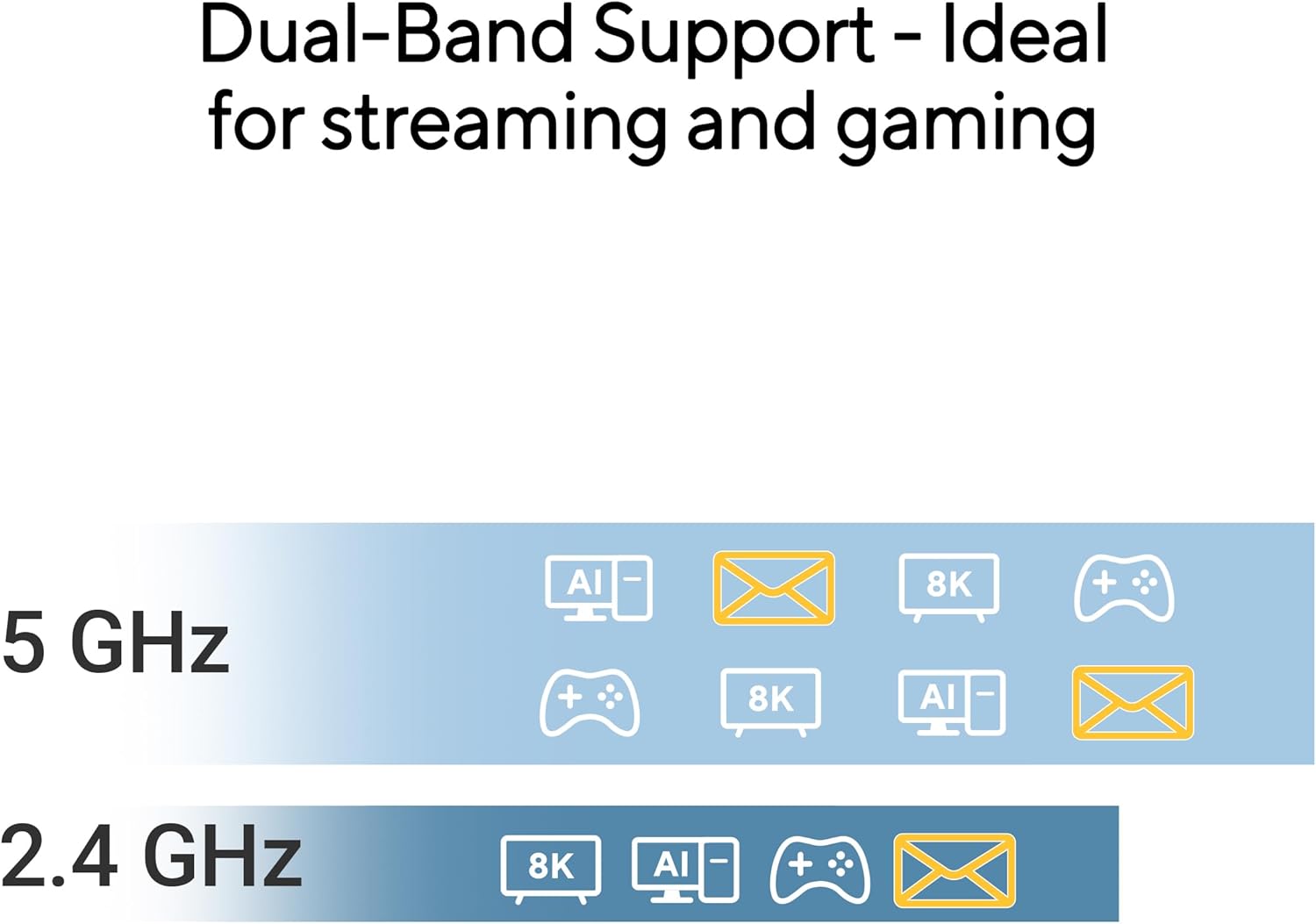 - Perfect for streaming and gaming – Dual-band support gives you the 5GHz frequency band for smooth 4K UHD streaming and low latency gaming.