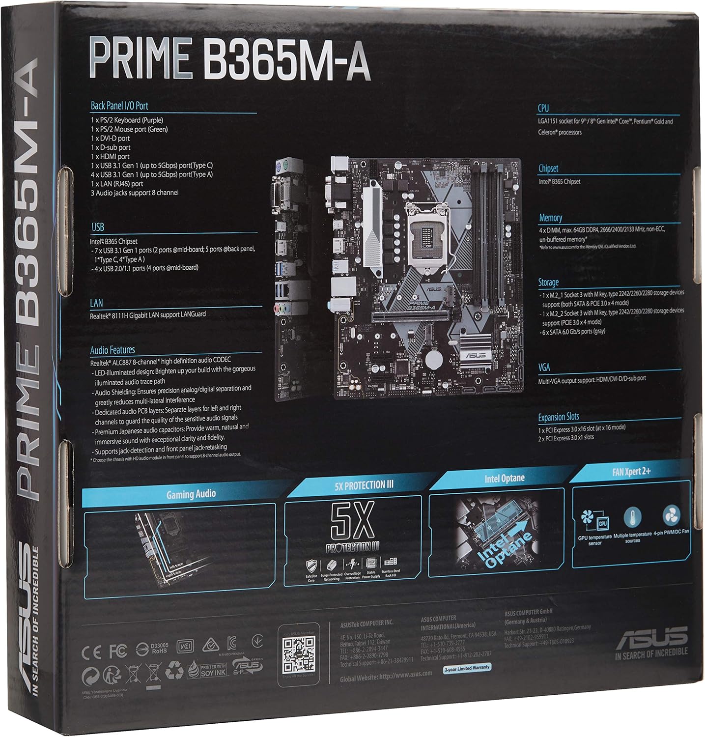 Asus Prime B365M-A LGA-1151 Support 9th/8th Gen Intel Processor with Aura Sync RGB Header, DDR4 2666MHz, M.2 Support, HDMI, SATA 6Gbps mATX Motherboard