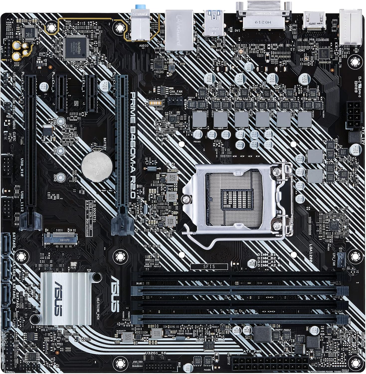 ASUS Prime B460M-A R2.0 Intel® H470 (LGA 1200) for Intel 11th gen & 10th Gen CPUs, 8 power stages, Intel® 1 Gb Ethernet, HDMI, DVI, M.2 slot, 4*SATA 6Gb/s, front USB 3.2 Gen 1, mATX motherboard
