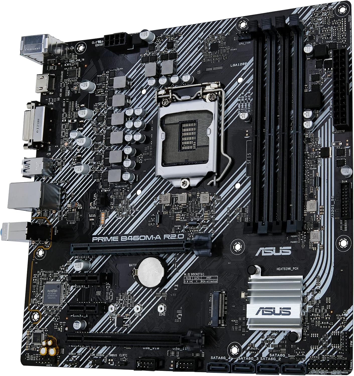 ASUS Prime B460M-A R2.0 Intel® H470 (LGA 1200) for Intel 11th gen & 10th Gen CPUs, 8 power stages, Intel® 1 Gb Ethernet, HDMI, DVI, M.2 slot, 4*SATA 6Gb/s, front USB 3.2 Gen 1, mATX motherboard