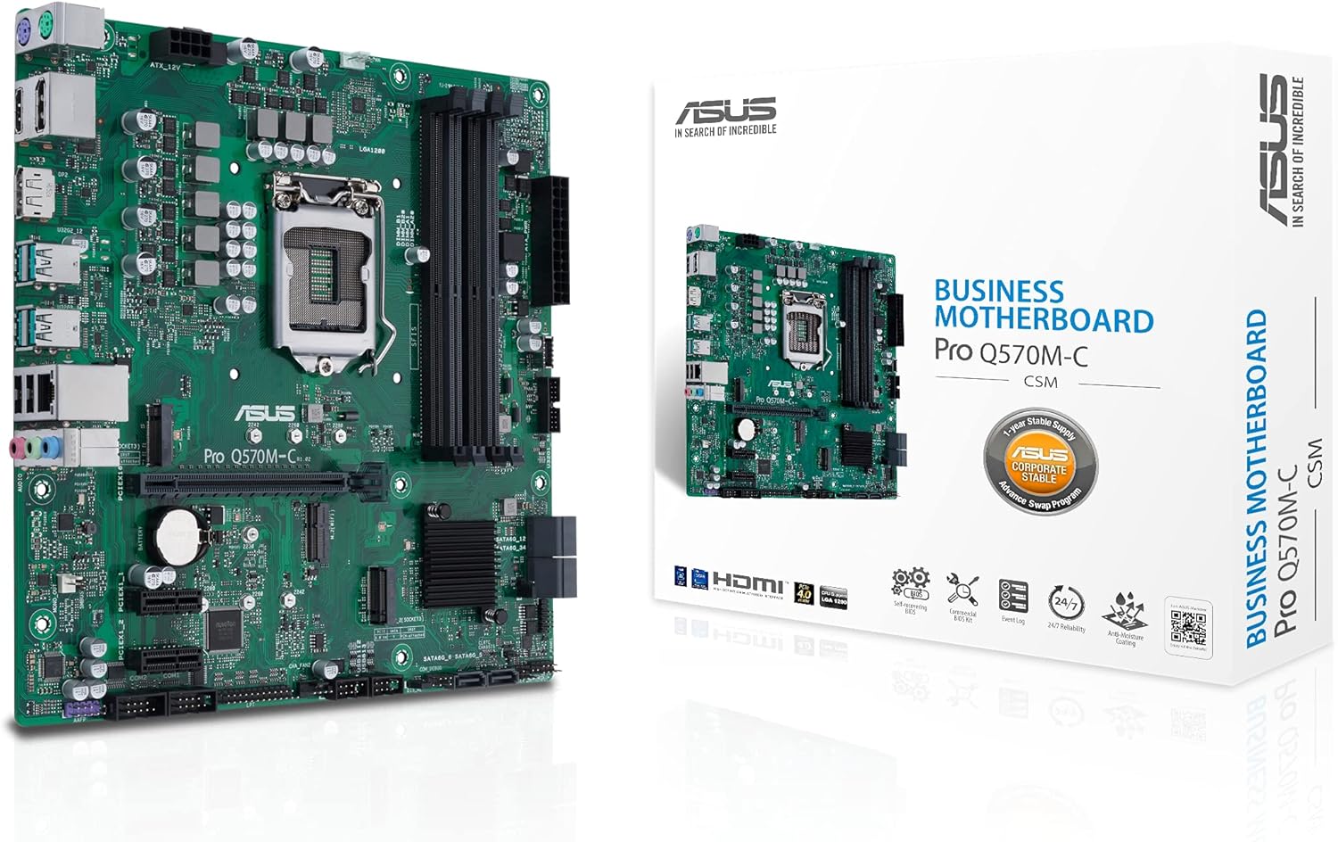 ASUS Pro Q570M-C/CSM LGA1200 (Intel 10th&11th Gen) mATX Commercial Motherboard (PCIe 4.0,1 LAN,Front Panel USB 3.2 Type-C, Intel vPro,2X DP,TPM 2.0 IC,COM debug Header,self-Recovering BIOS,ACCE)