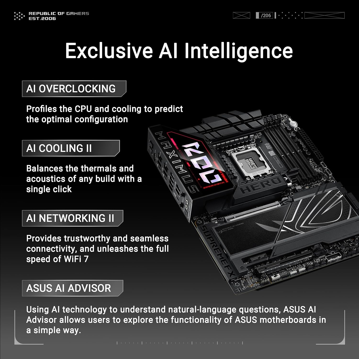 ASUS ROG Maximus Z890 Hero Intel Z890 LGA1851 DDR5 9200 HDMI 2xUSB4 6X M2 USB3.2 WiFi 7 + BT Aura... Read more Read more