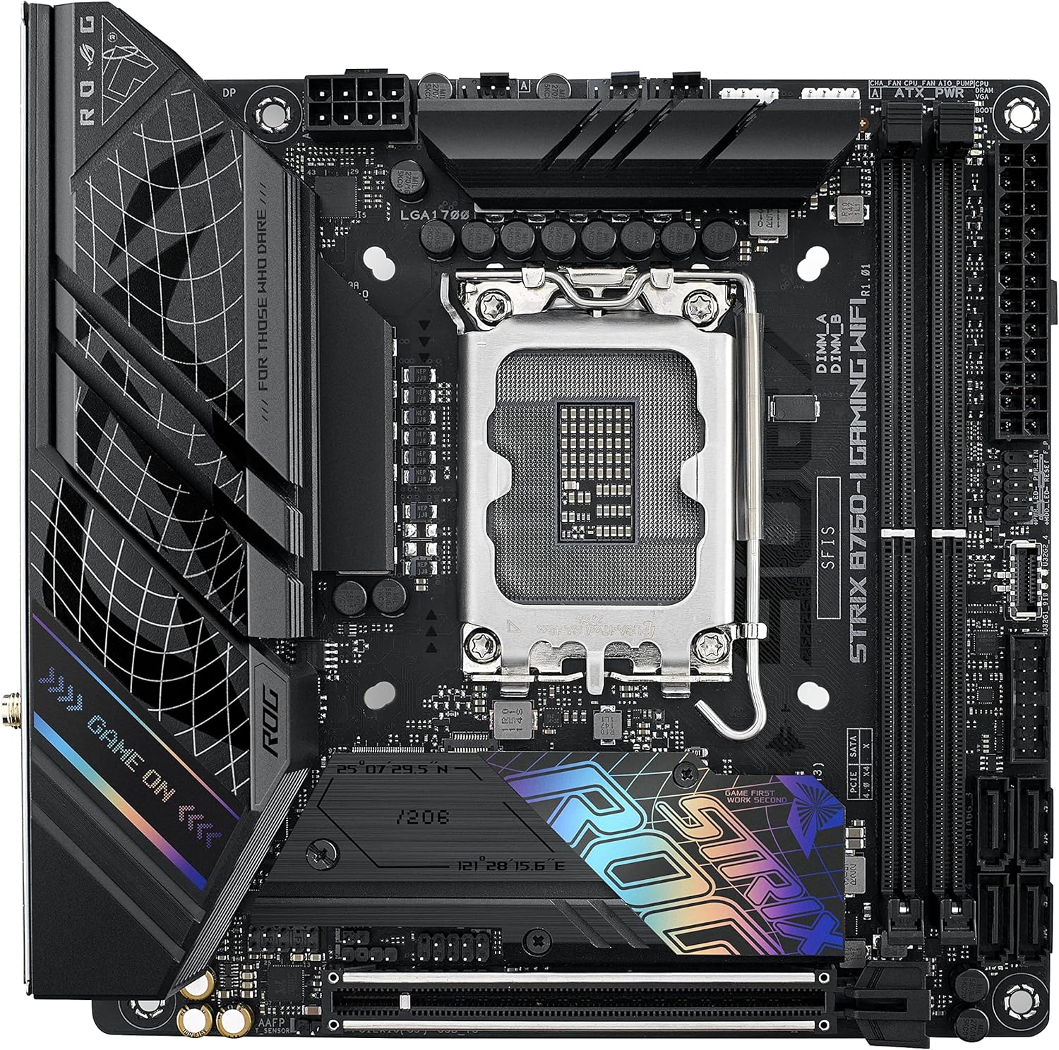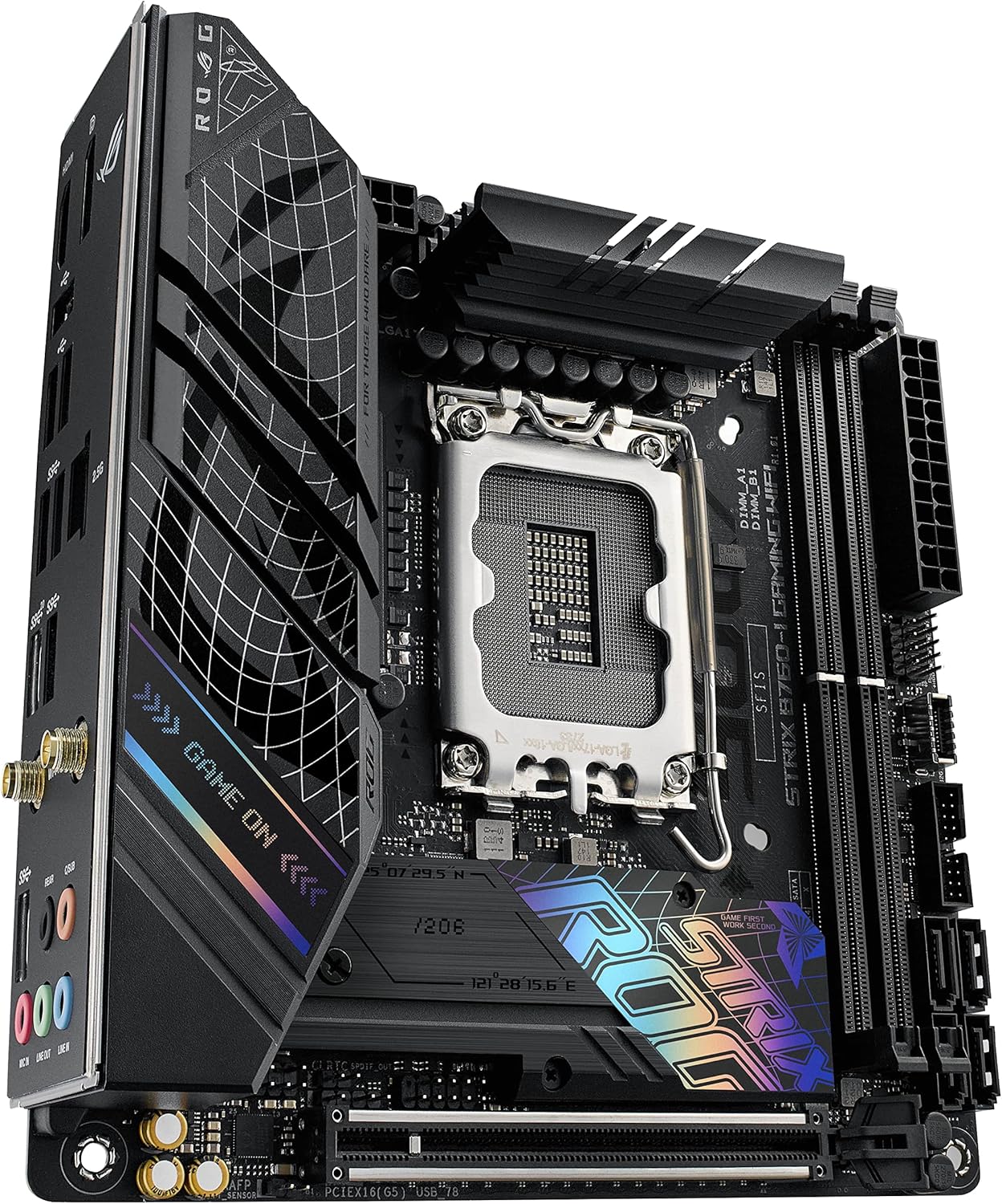 - The black housings and the circuit board of the Strix B760-I match well with most products from the versatile ROG ecosystem