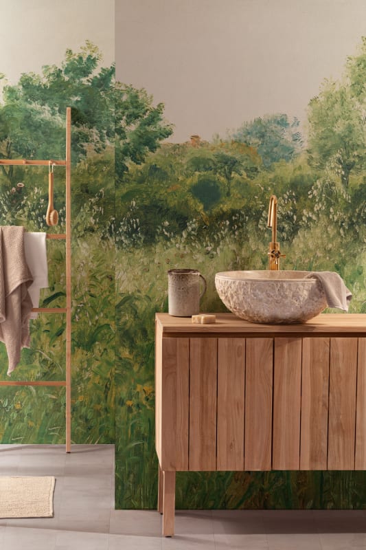 A mural is a wallpaper printed in strips that all fit together to create one large image or design, typically on one wall. Murals are custom-fit to any wall size.