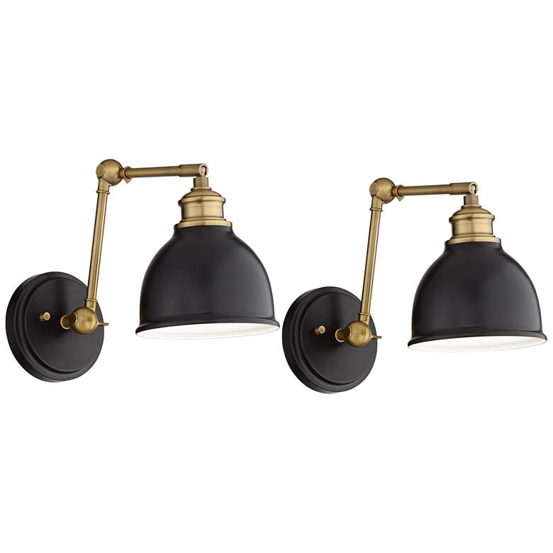 Barnes and Ivy Sania Black and Antique Brass Swing Arm Wall Lamps Set of 2