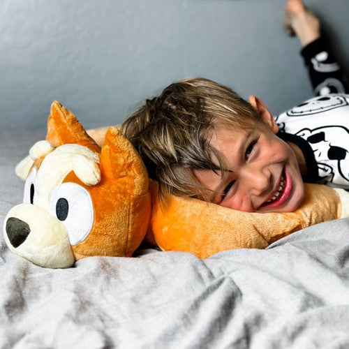BINGO: Good on 'ya! Bluey’s adorable little sister Bingo is everyone’s favorite little red puppy and is now a Pillow Pet! Bingo loves to play and learn with her big sister and her best friends, but also loves her quiet time!