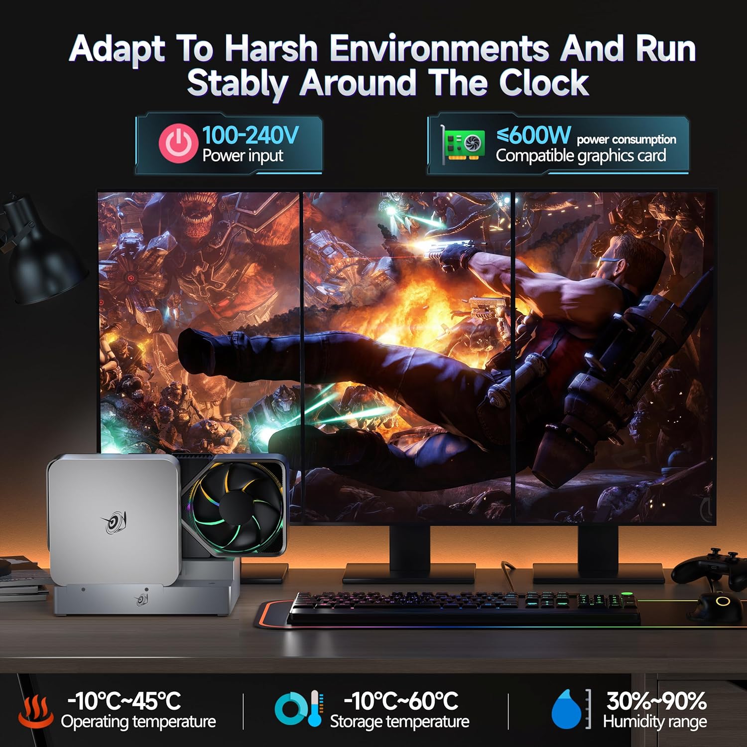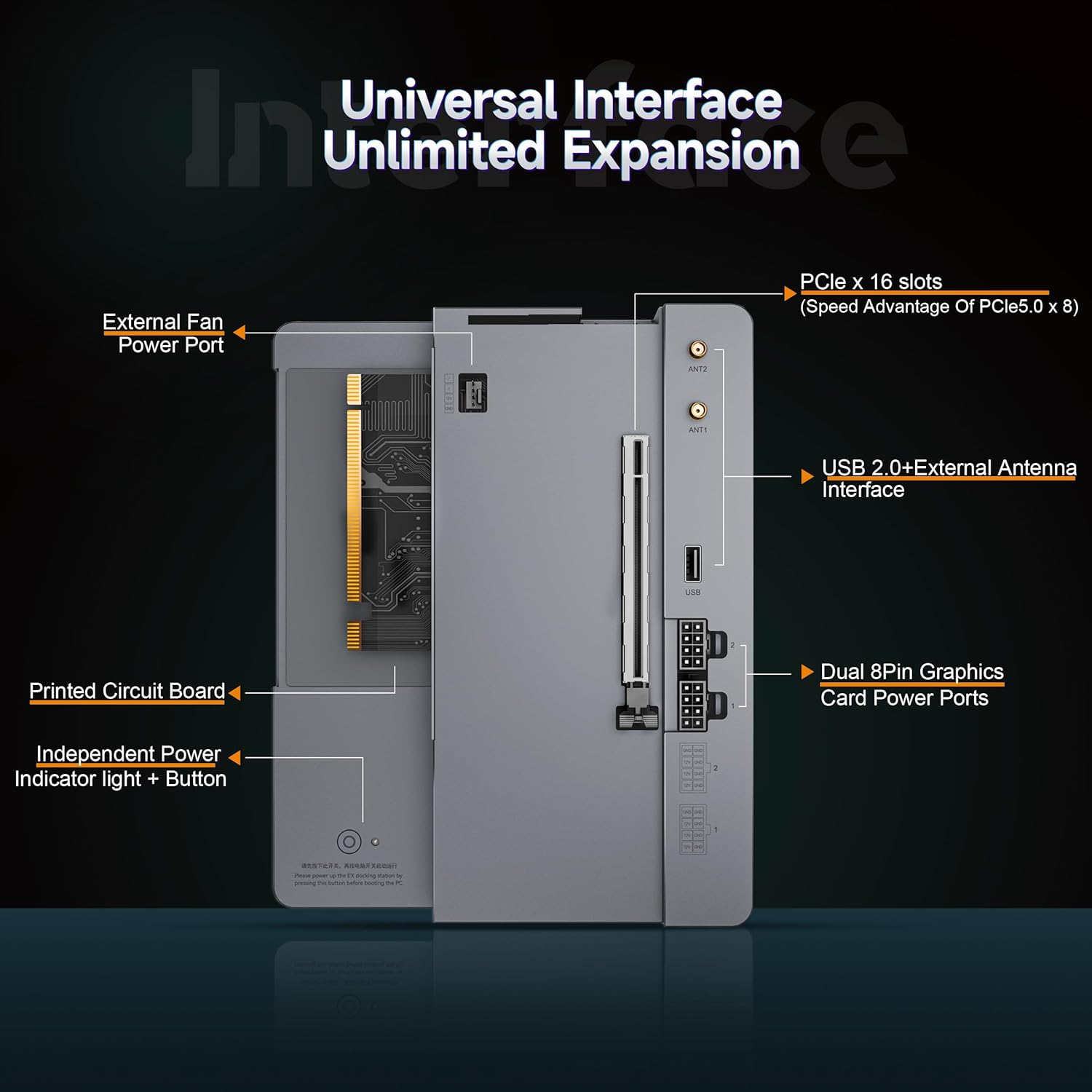 - 【PCle5.0×8 & Dual 8-pin Power Supply】External GPU adopts PCle×16 slot, with the speed advantage of PCle5.0×8 (single-channel bandwidth 4GB/S, rate up to 32GT/S). Based on the PCle5.0 standard, it meets the high-speed data transmission requirements of external independent graphics cards (such as RTX 40/50 series, RX 7000/9000 series). The dual 8-pin power interface ensures the ultimate performance of the expansion dock, which is suitable for games, 3D rendering, AI computing and other scenarios.