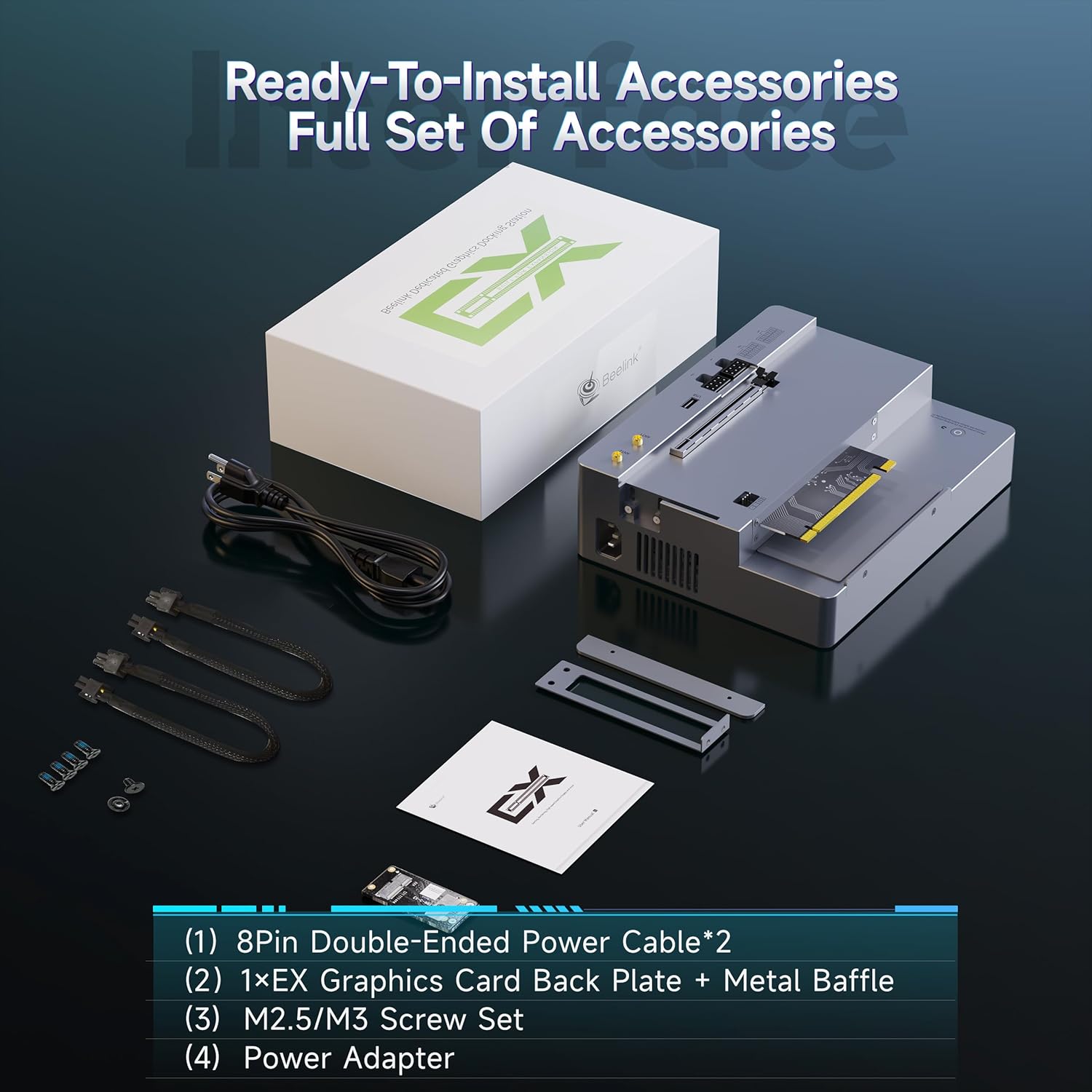 - 【Note】Beelink External GPU Docking Station is only suitable for GTi14 AI 185H/GTi14 AI 155H/GTI13 13900HK/GTI12 Ultra 12900H. It can be used with graphics cards RTX 40/50 series, RX 7000/9000 series, and other dedicated GPUs. And when assembling the expansion dock and mini pc, the power must be turned off throughout the process.