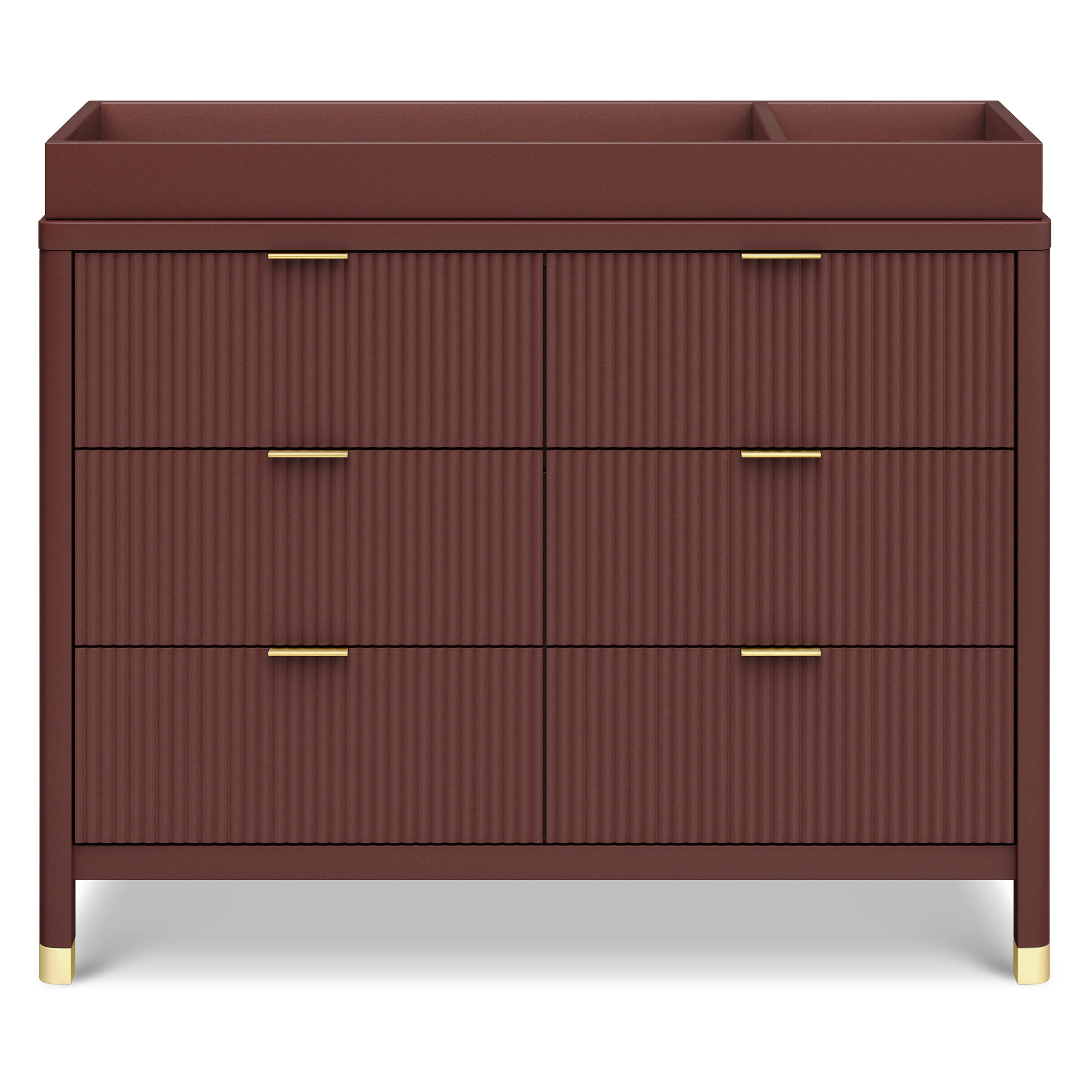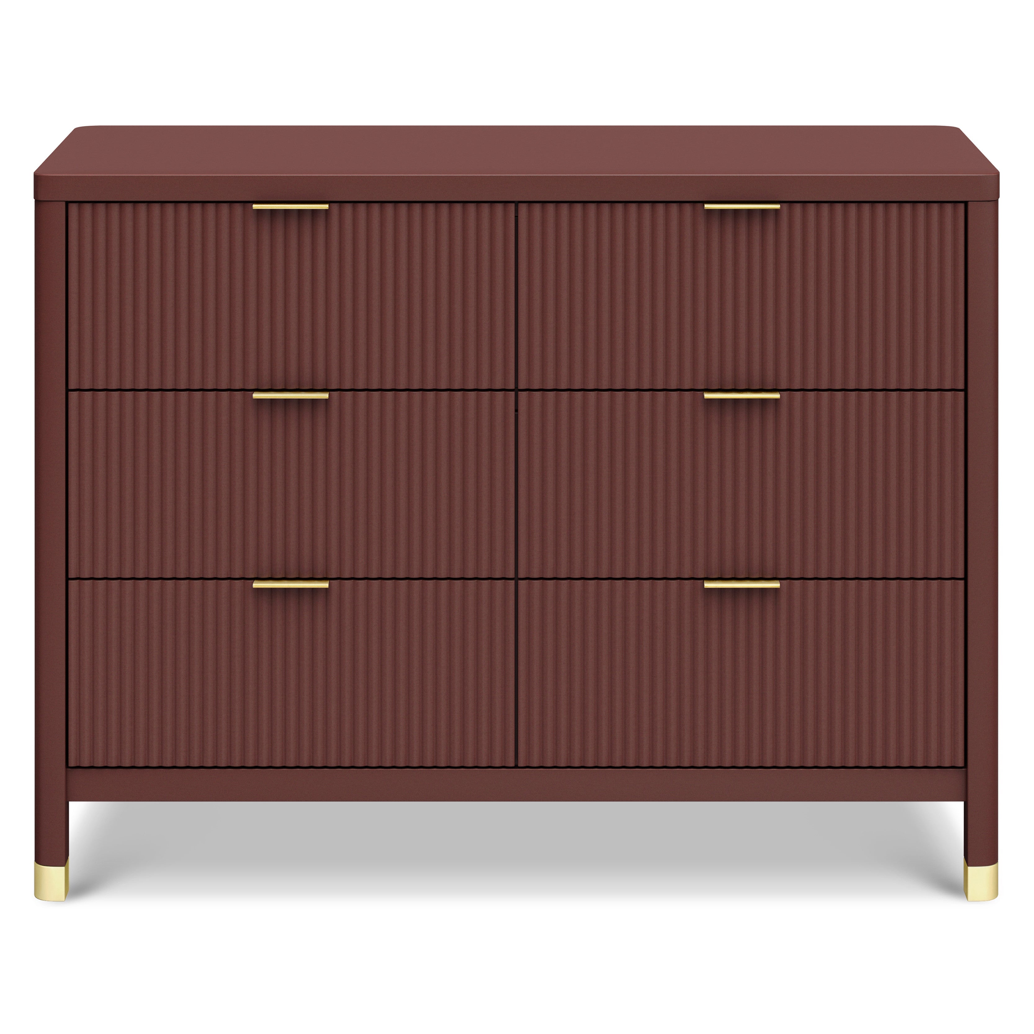 With its textured tambour design, elegant gold feet, and modern drawer pulls, the Brimsley Tambour Dresser was crafted for those who appreciate the perfect blend of sophistication and functionality. The dresser boasts 6 spacious drawers for clothing, blankets, and more. Transform your space with a statement piece that not only organizes but elevates the style of your room. Its versatility ensures that it will seamlessly transition from a nursery staple to a stylish piece in any room of your home.