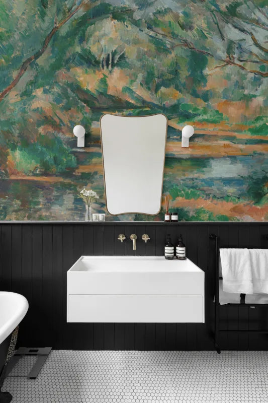 A mural is a wallpaper printed in strips that all fit together to create one large image or design, typically on one wall. Murals are custom-fit to any wall size.
