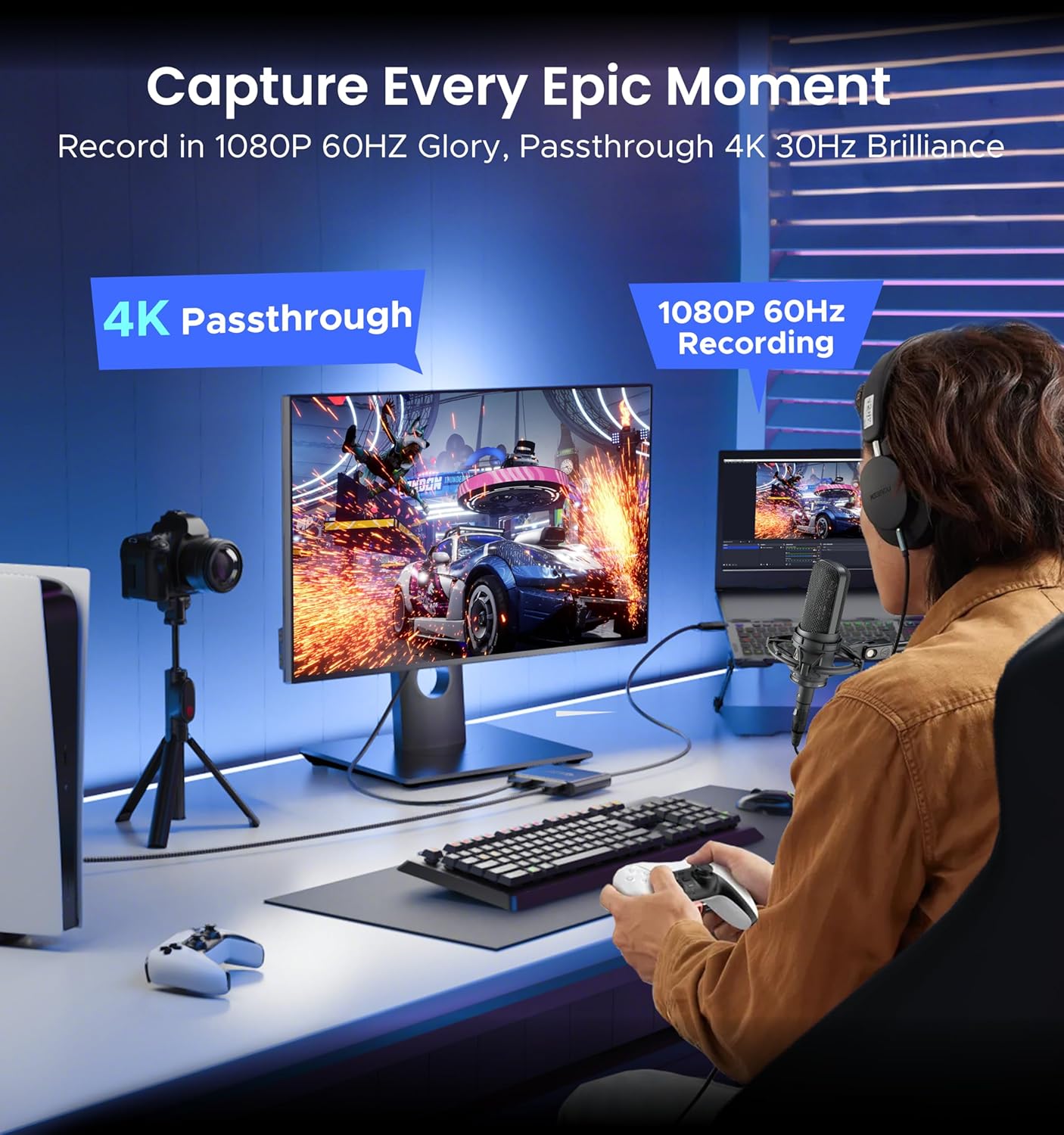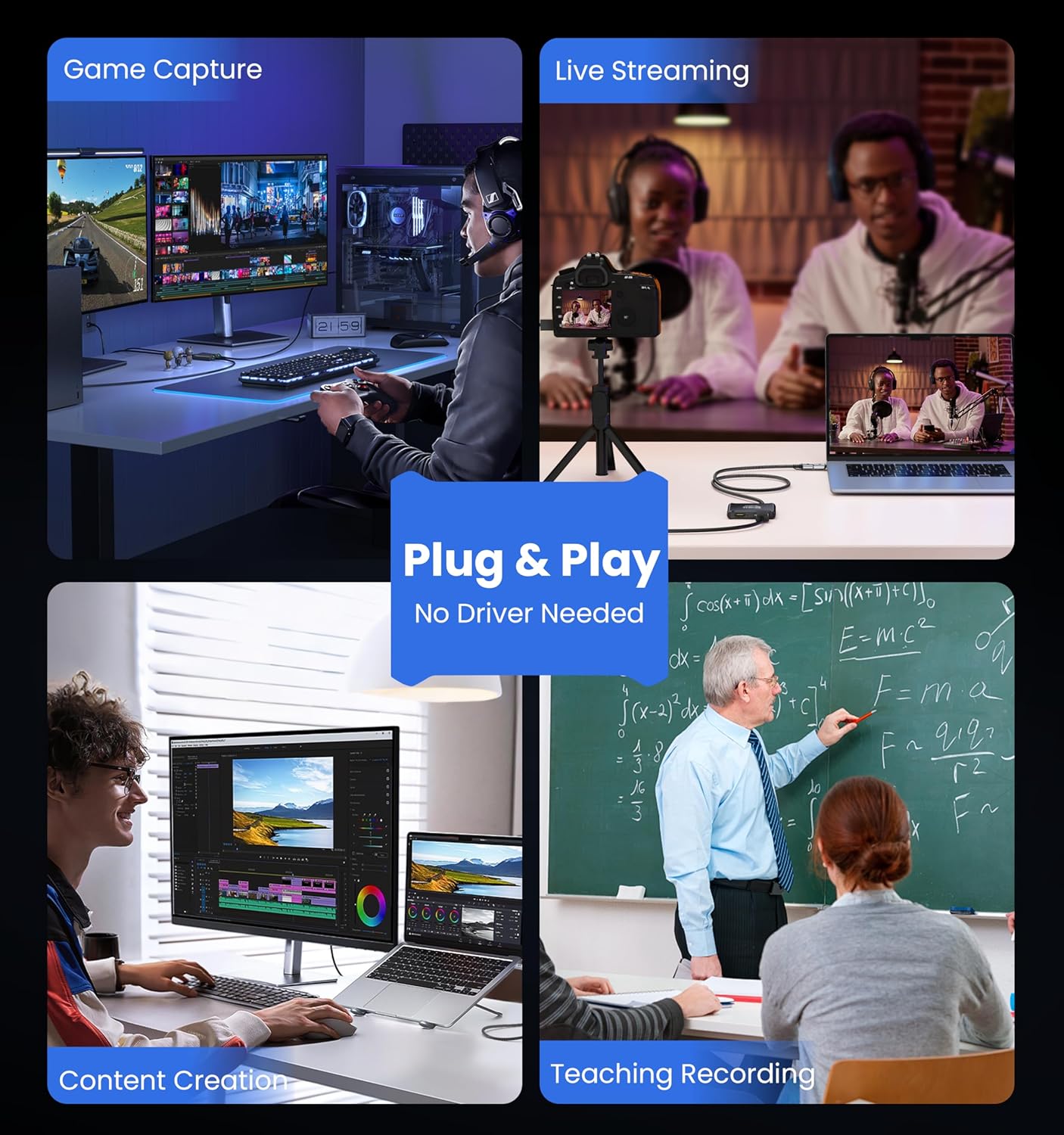 - [1080P Capture & 4K Passthrough] With this USB 3.0 video capture card, you can record footage in 1080P60@Hz HD resolution while streaming a native 4K30@Hz lossless signal to a secondary display. Suitable for diverse groups including gamers, live streamers, content creators, podcasters, online teachers, remote workers, music practitioners and video professionals.