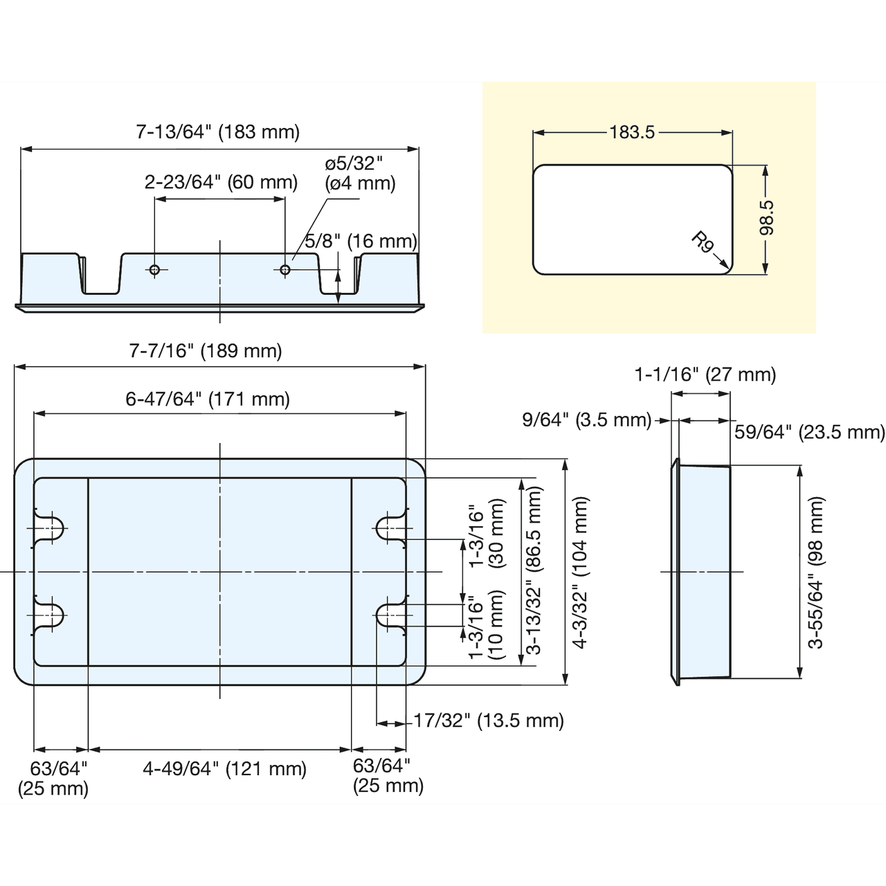 - Width: 104 mm / 4.125 in